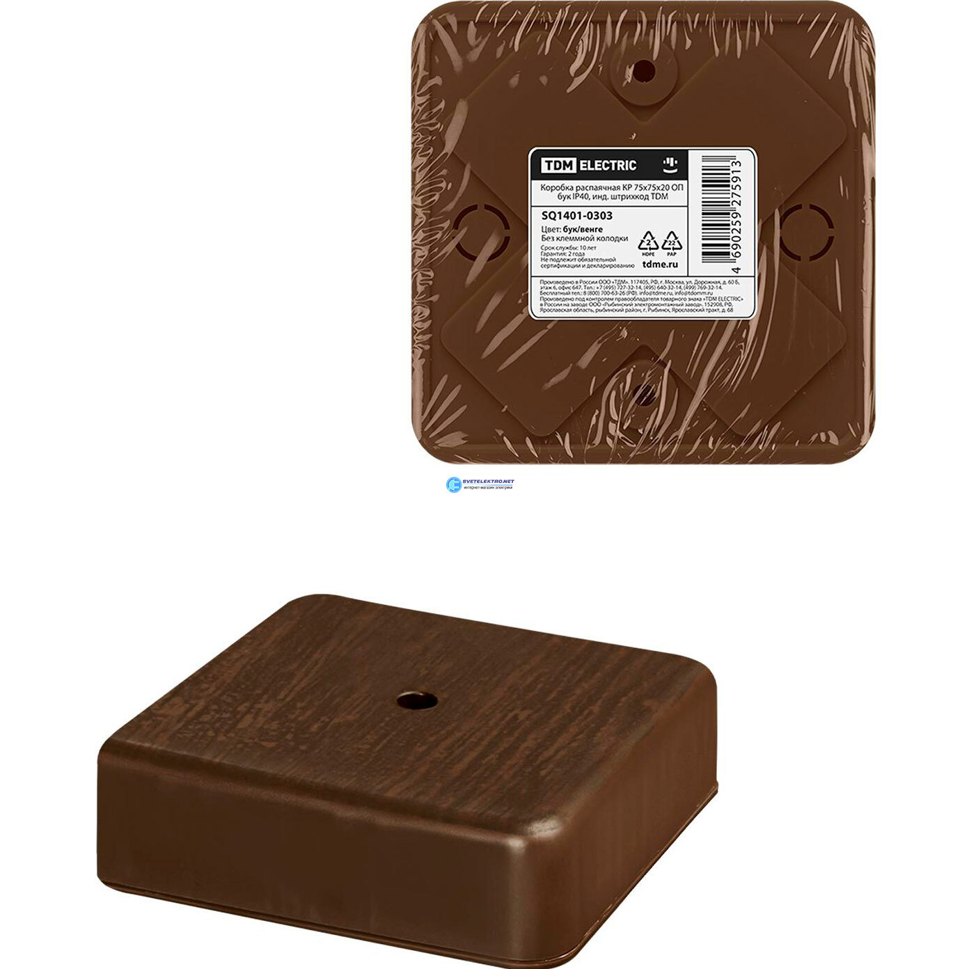 Коробка распаячная КР 75х75х20 ОП бук IP40 инд. штрихкод, код SQ1401-0303, производитель TDM