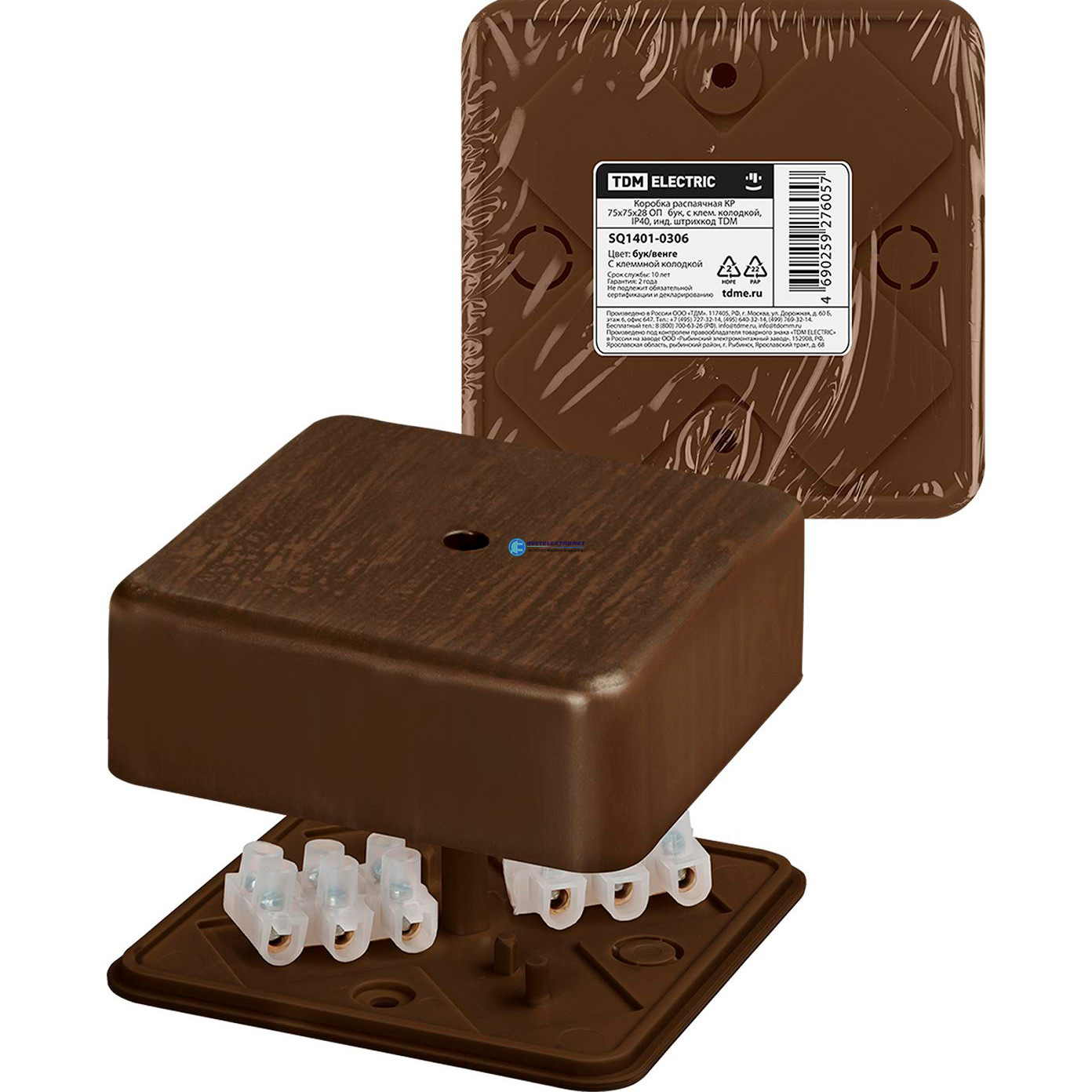Коробка распаячная КР 75х75х28 ОП бук, с клем колодкой, IP40, инд. штрихкод, код SQ1401-0306, производитель TDM