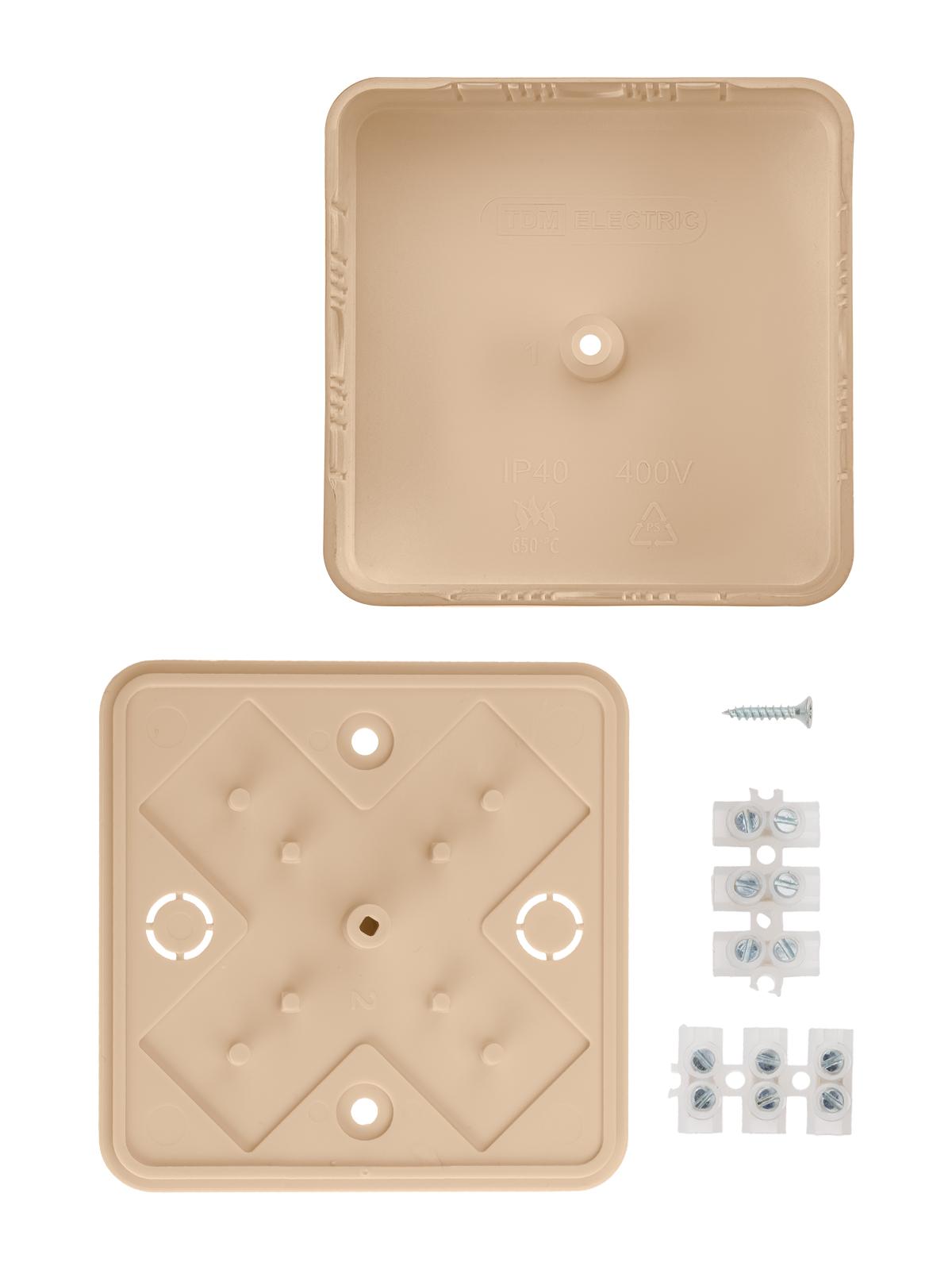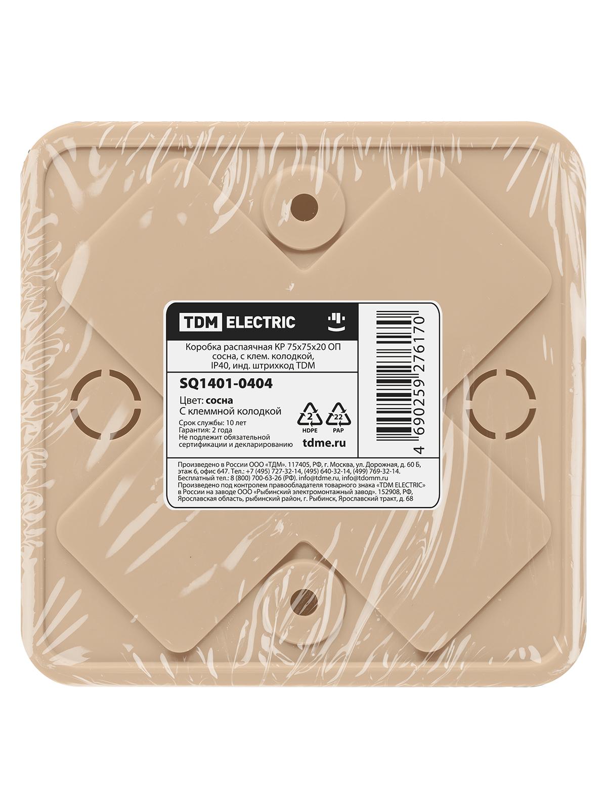 Коробка распаячная КР 75х75х20 ОП сосна с клем. колодкой IP40 инд. штрихкод, код SQ1401-0404, производитель TDM