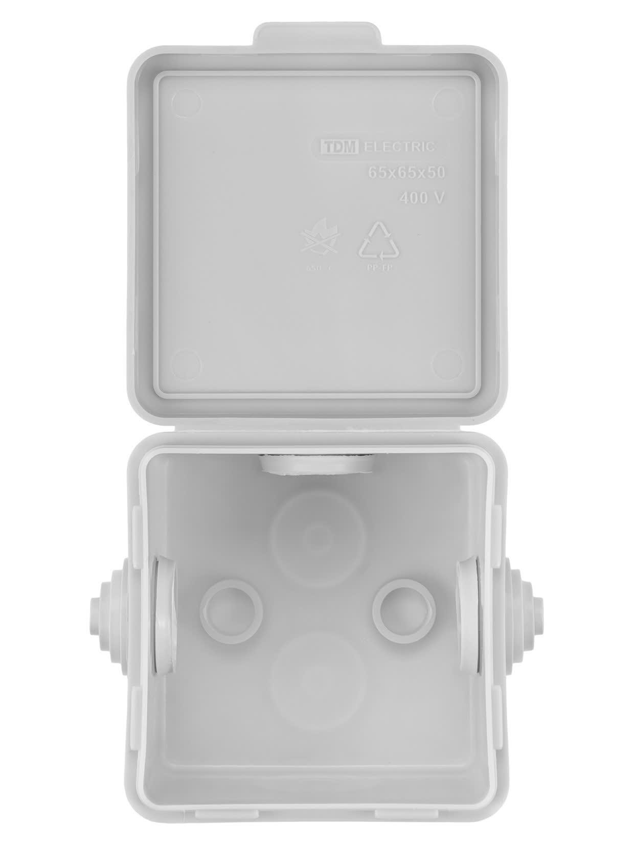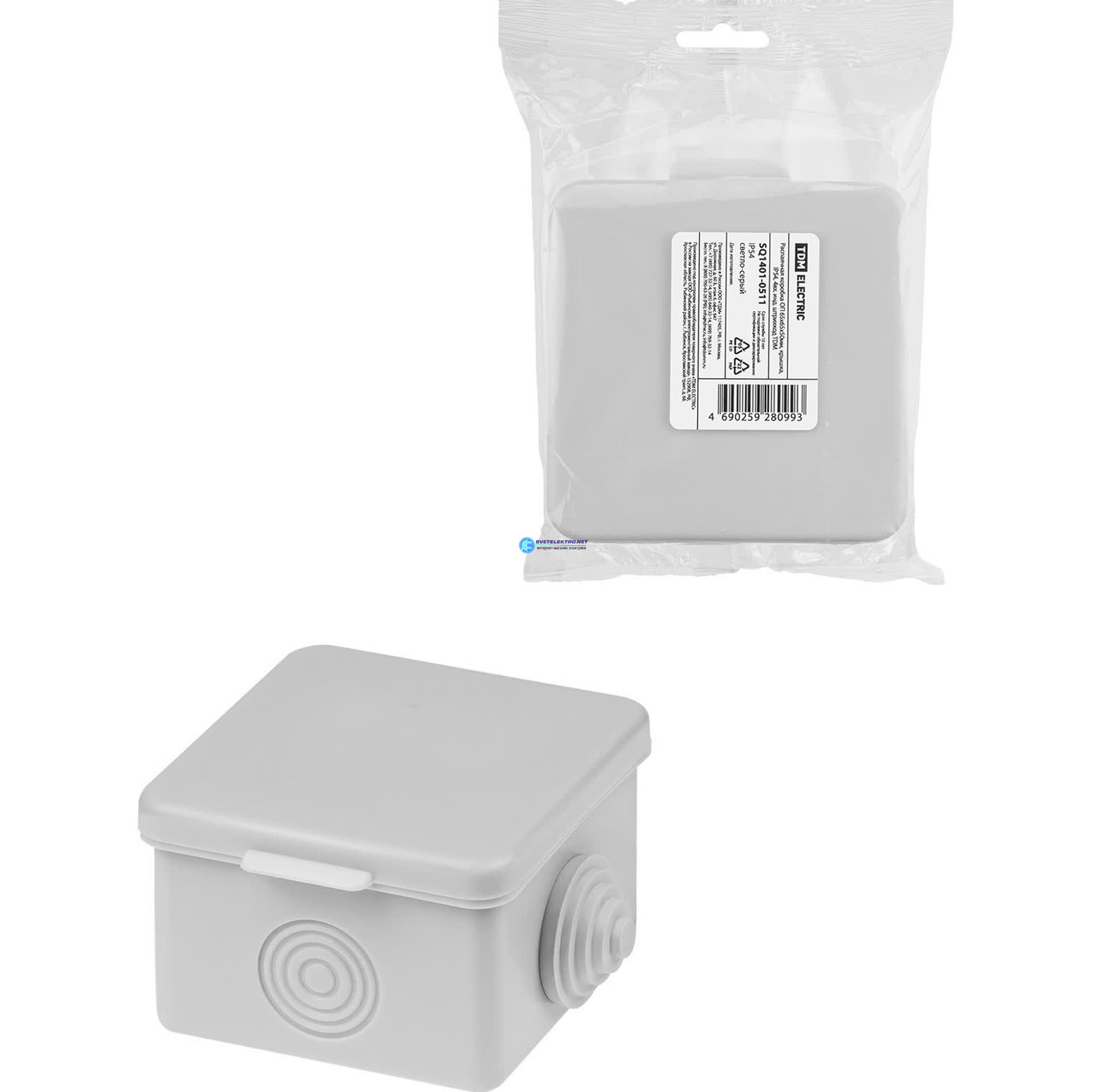 Распаячная коробка ОП 65х65х50мм крышка IP54 4вх. инд. штрихкод, код SQ1401-0511, производитель TDM