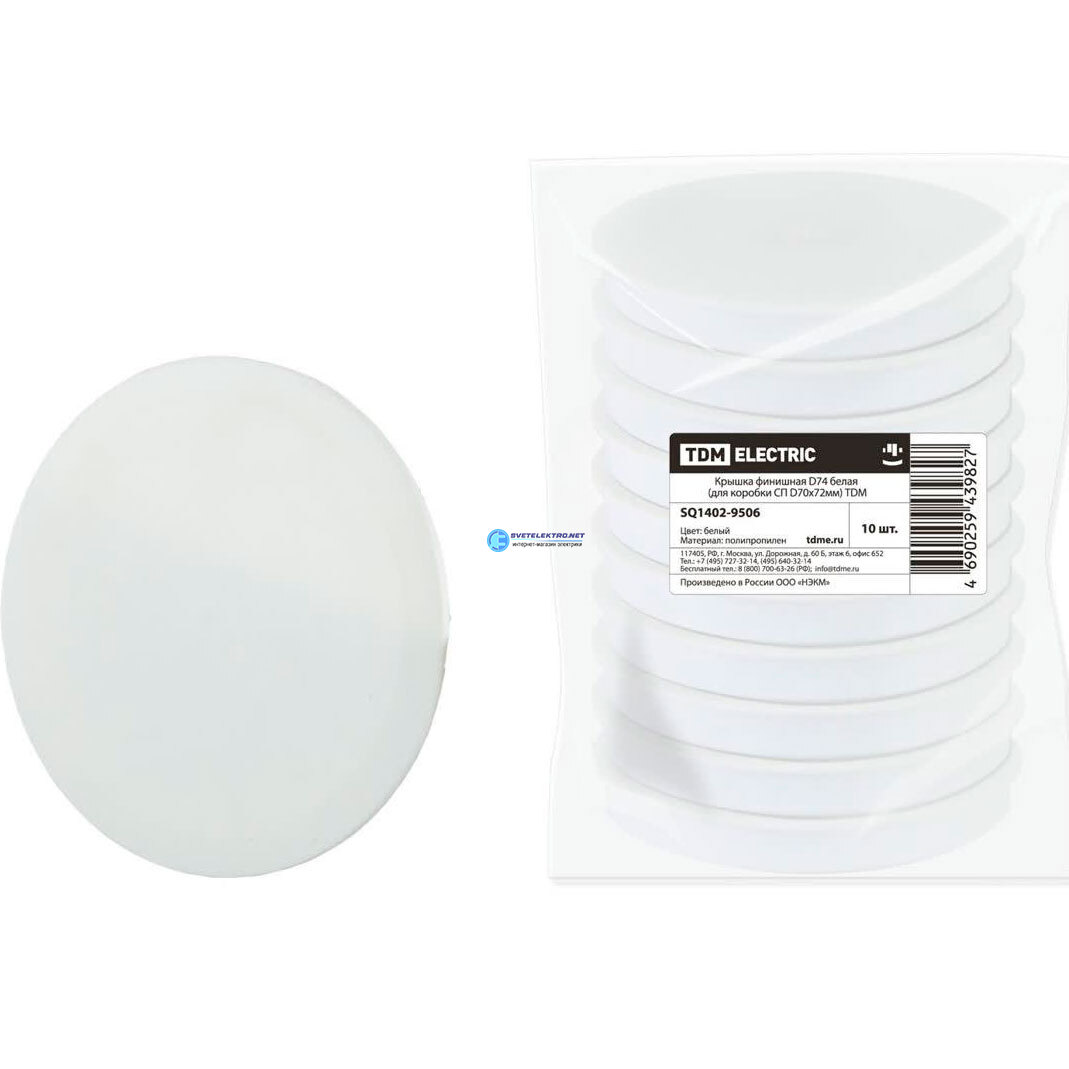 Крышка финишная D74 белая (для коробки СП D70х72мм), код SQ1402-9506, производитель TDM