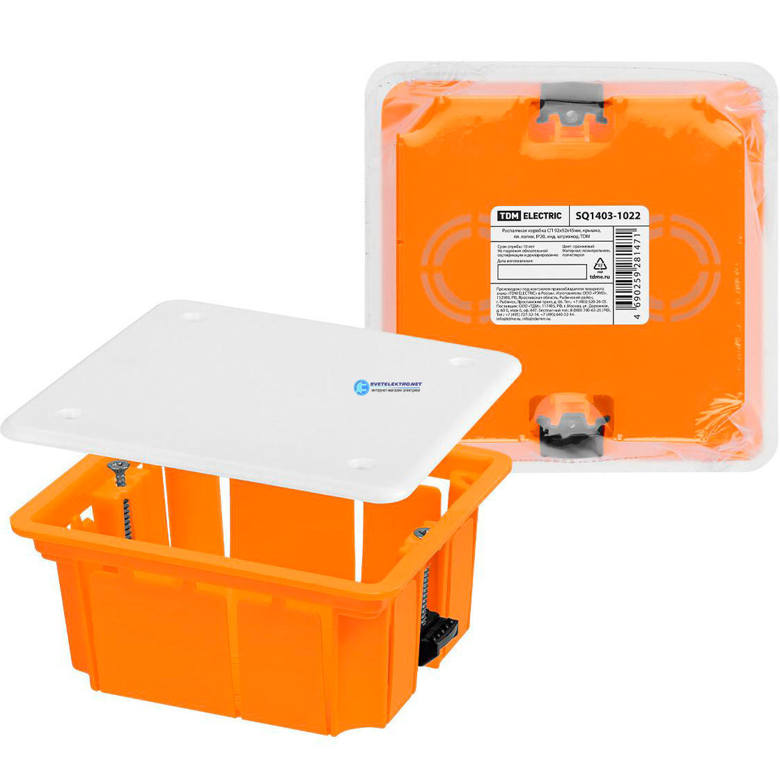Распаячная коробка СП 92х92х45мм крышка пл. лапки IP20 инд. штрихкод TDM SQ1403-1022 TDM