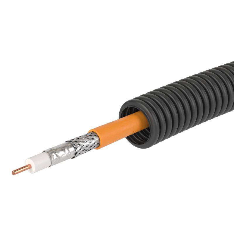 Электротруба ПНД гибкая гофрированная д.20мм цвет черный с кабелем SAT нг(А)-HF 50м, код 7VE72050B, производитель DKC