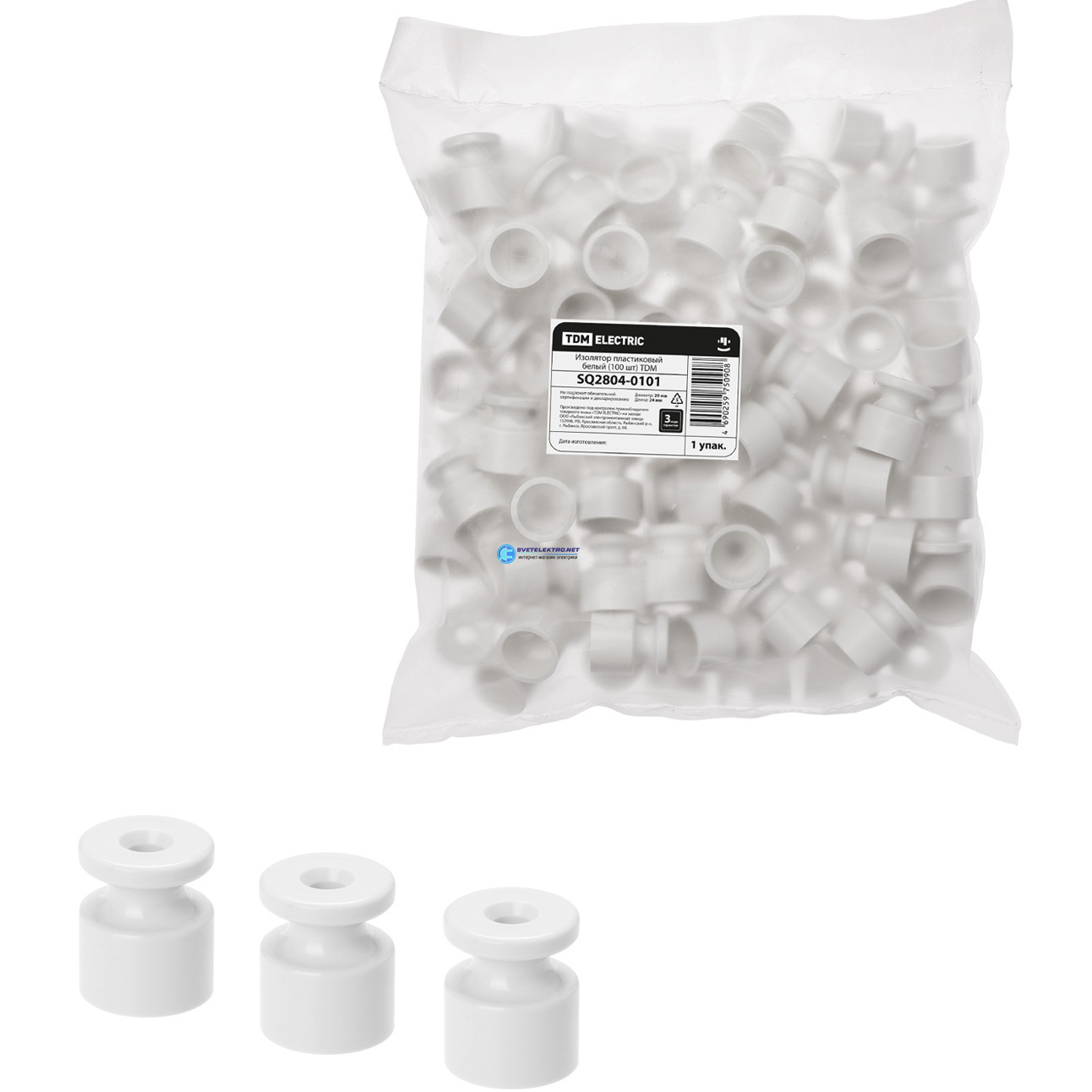 Изолятор пластиковый белый (100 шт), код SQ2804-0101, производитель TDM