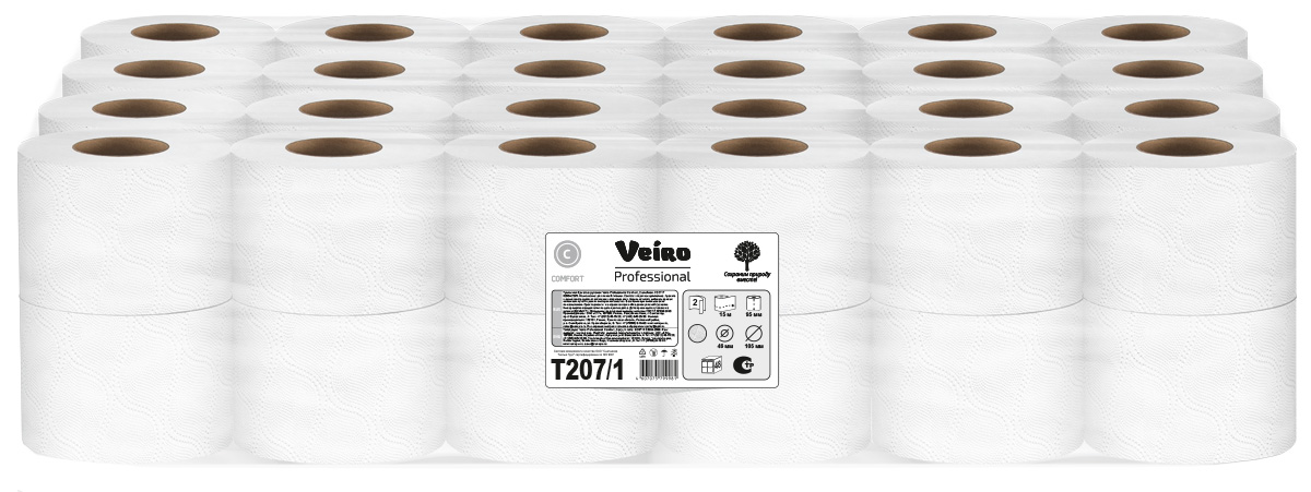 Туалетная бумага двуслойная в маленьких рулонах Comfort, 48 рулонов по 15 метров, код 23161, производитель VEIRO PROFESSIONAL