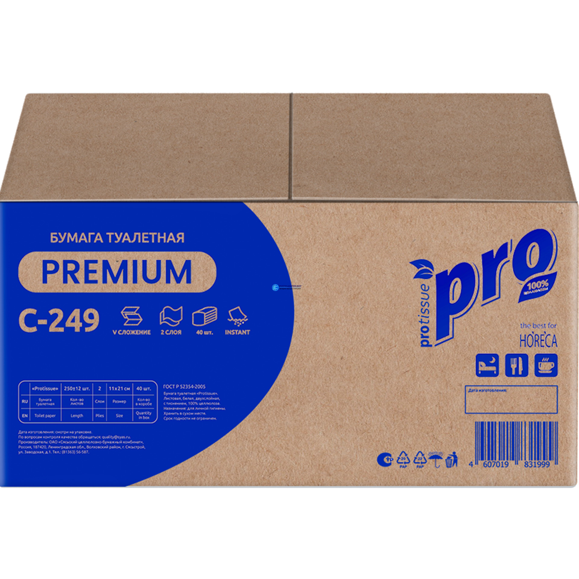 Туалетная бумага водорастворимая листовая PROtissue Instant, двуслойная, 40 пачек по 250 листов 25102 Protissue
