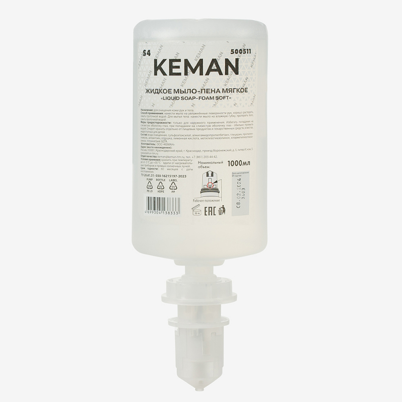 Мыло-пена ''Мягкое'' в картриджах S4, 1000мл,КЕМАN, код 25991, производитель KEMAN