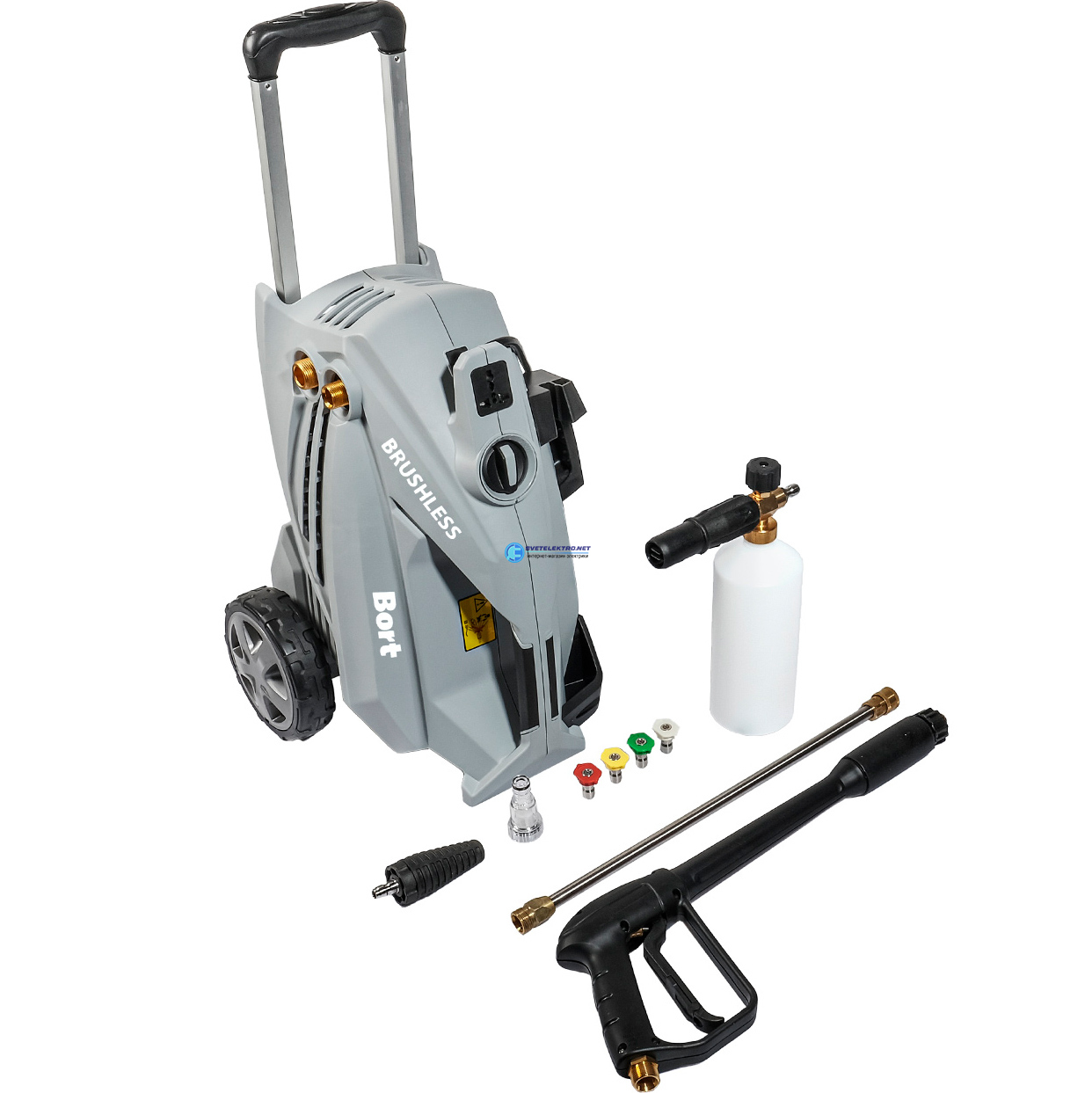 | Комплектация: | Пистолет-распылитель (1 шт)|Напорный шланг (1 шт)|Пеногенератор (1 шт)|Фильтр (1 шт)|Сменные форсунки (4 шт)|Грязевая фреза (1 шт)|Игла для очистки сопла (1 шт), |