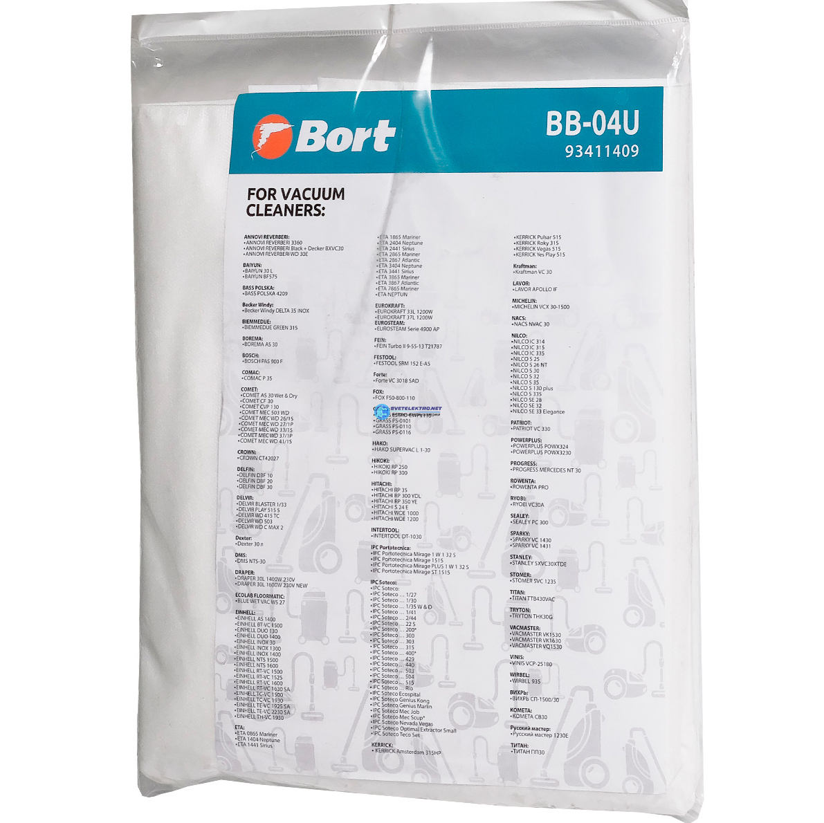 Мешки для пылесосов COMET, DELFIN, EINHELL (BB-04U) 5шт, код 93411409, производитель BORT