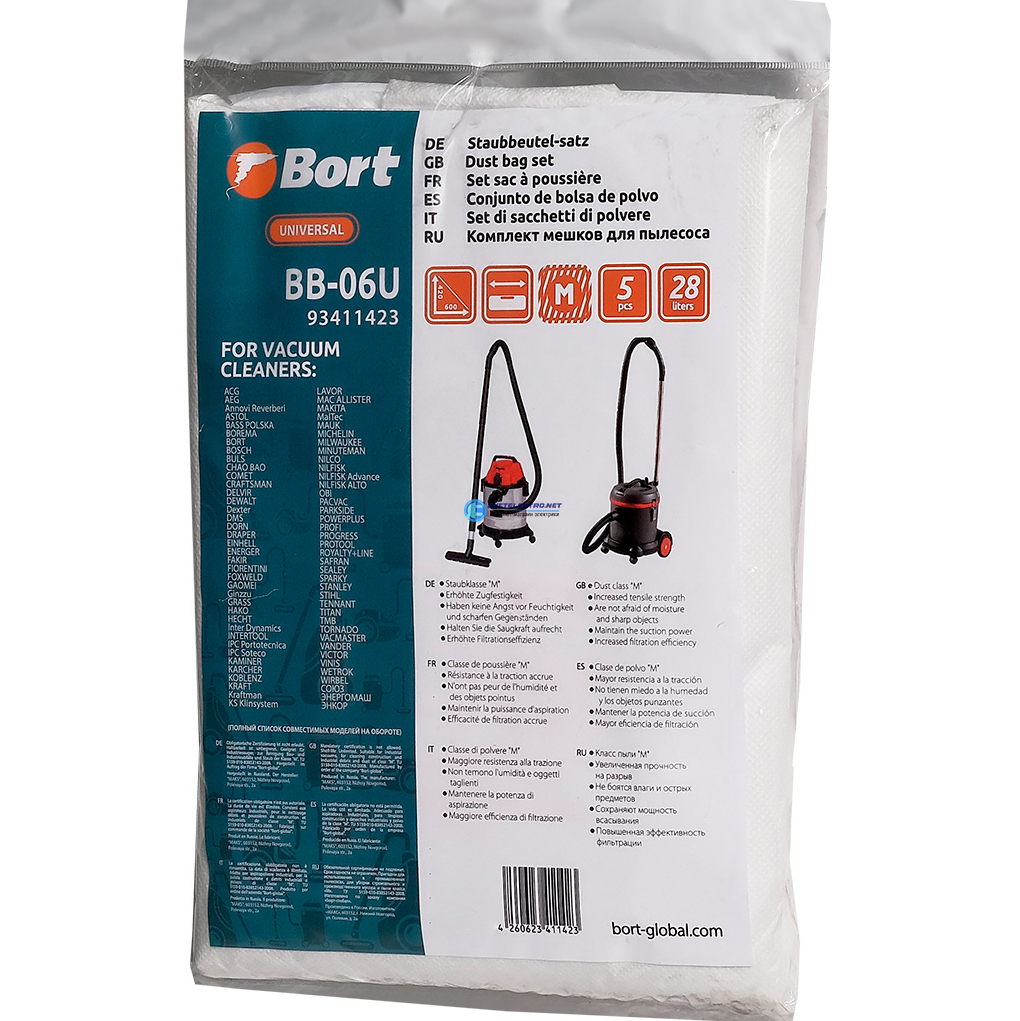 Мешки для пылесосов EINHELL, IPC, NILFISK (BB-06U) 5шт, код 93411423, производитель BORT