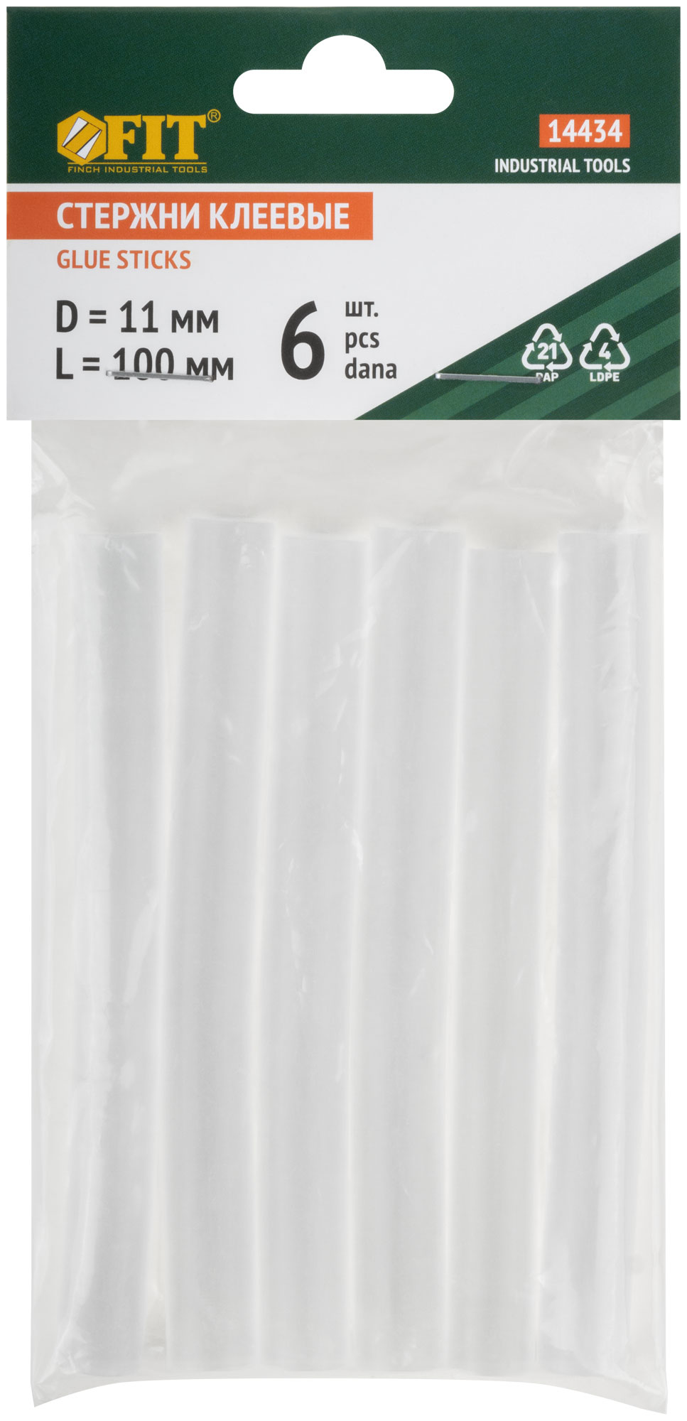 Стержни клеевые кристально прозрачные 11х100 мм, 6 шт., код 14434, производитель FIT