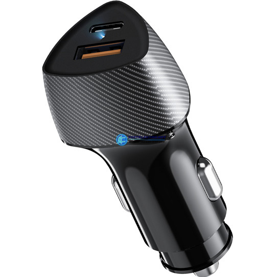 Устройство автомобильное зарядное c двумя портами (USB-A QC 3.0 + USB-C PD) cо световой индикацией, 20Вт, черное, код 16-0241, производитель REXANT