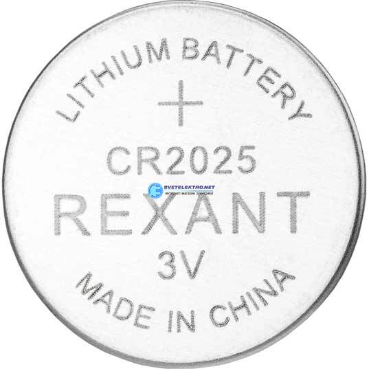 Батарейка литиевая CR2025 3В блистер 5 шт., код 39-1107, производитель REXANT