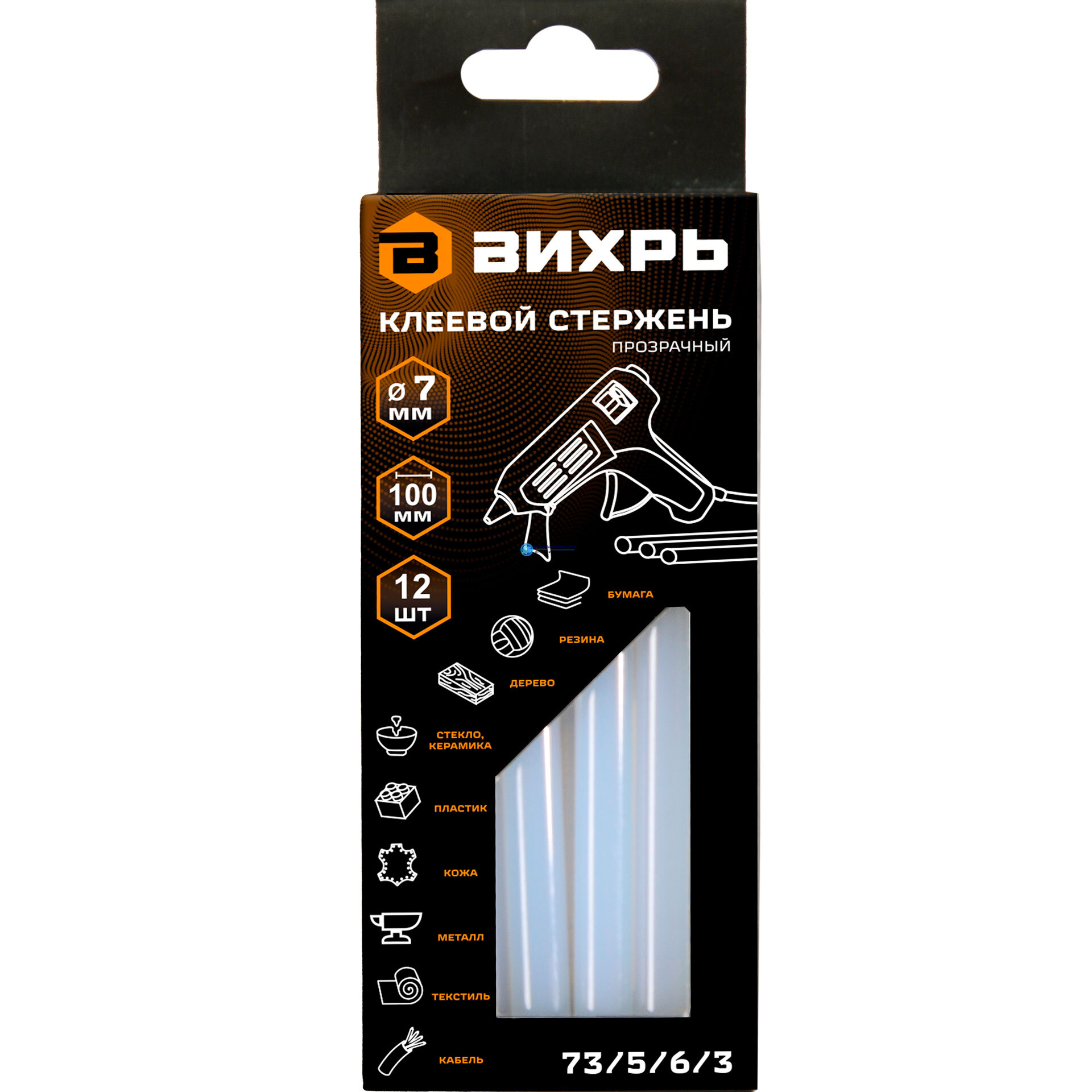 Стержень клеевой 7х100мм, 12., код 73/5/6/3, производитель Вихрь