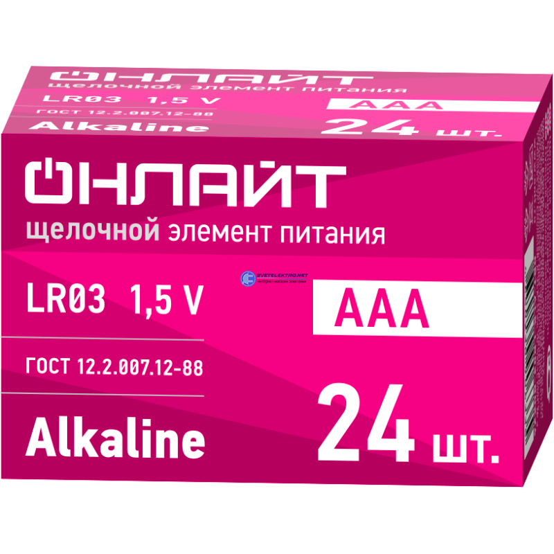 Батарейка OBT-ALK-LR03-BOX24, код 90633, производитель ОНЛАЙТ