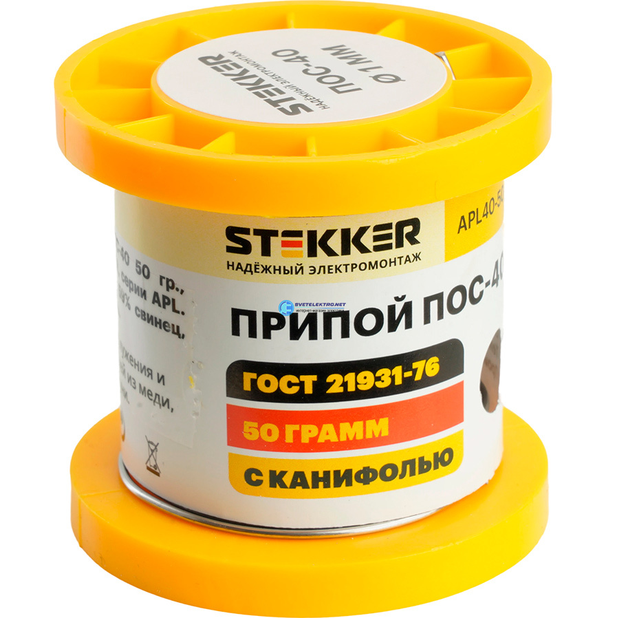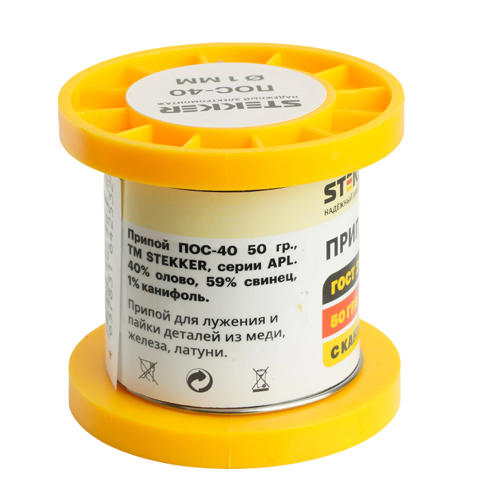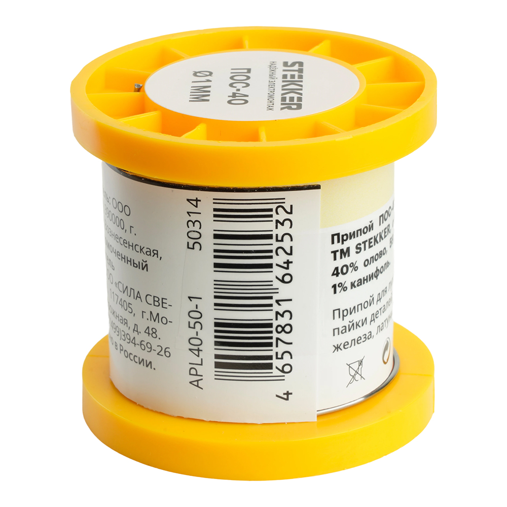 Припой ПОС-40 с канифолью в бобине 50гр (40% олово 59% свинец 1% канифоль) APL40-50-1 50314 Stekker