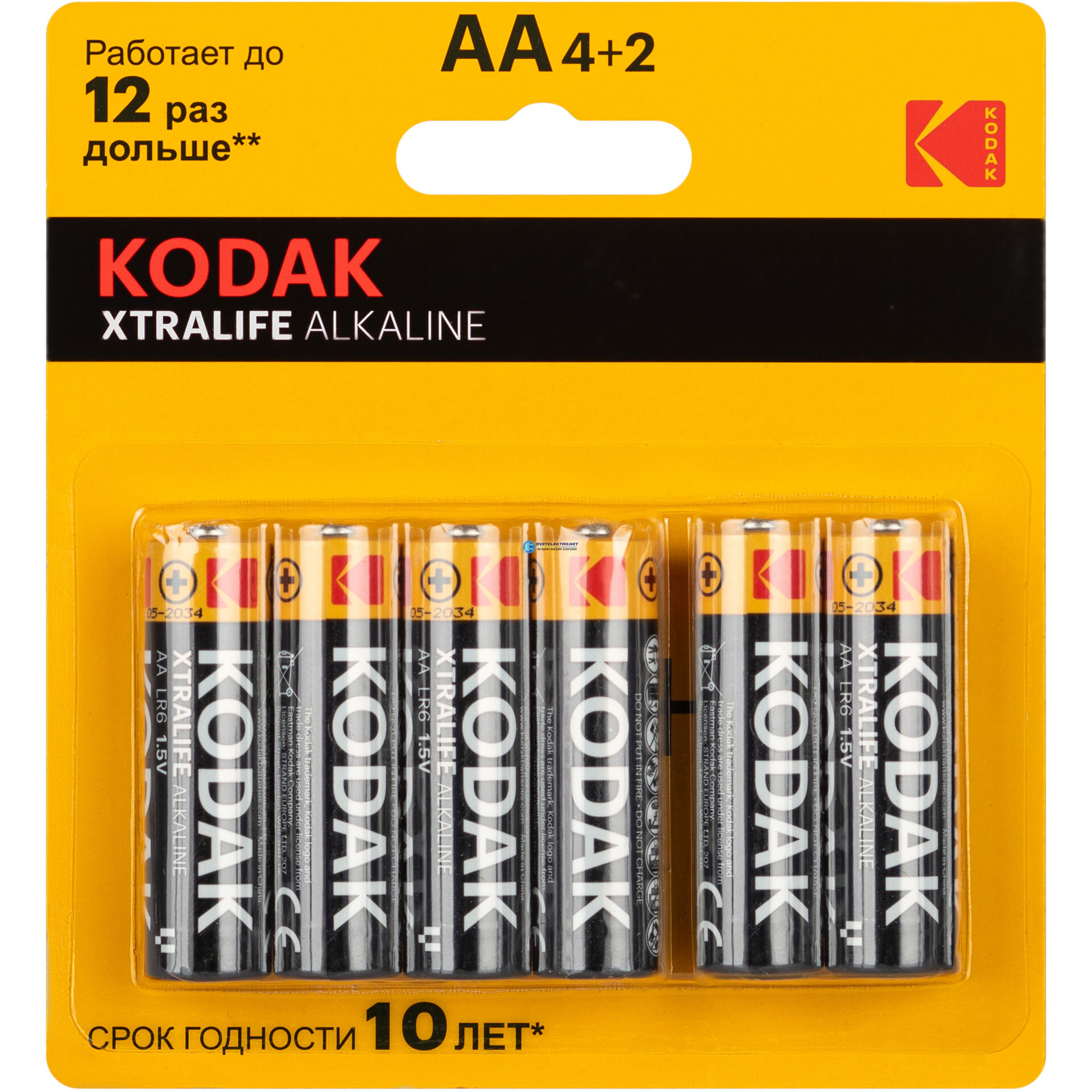 Батарейка LR6-4+2BL XTRALIFE Alkaline, код Б0064204, производитель KODAK