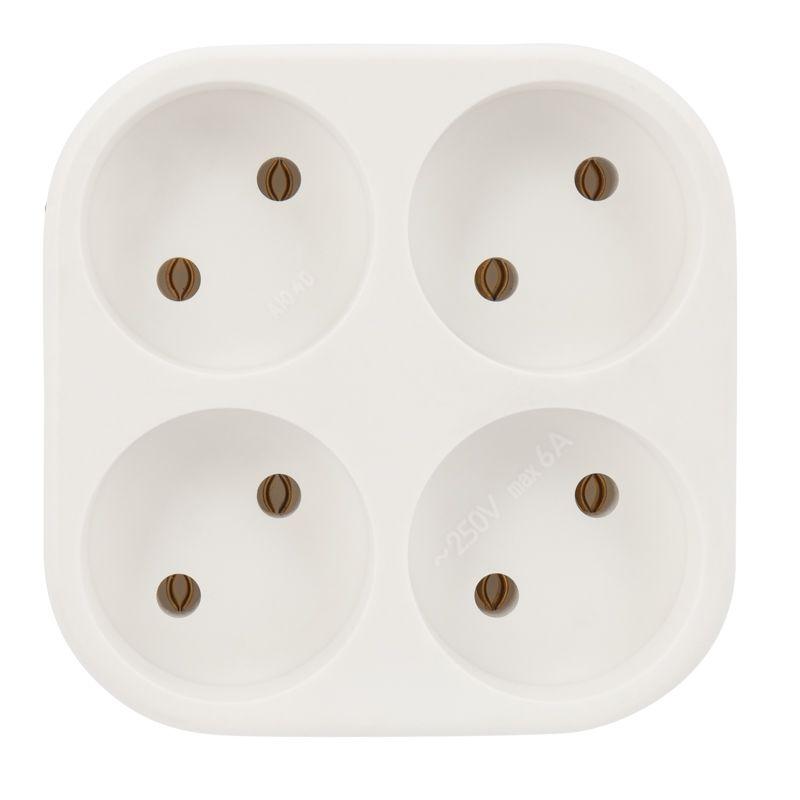 Четверник электрический 6А без заземления, белый, код 11-1072, производитель REXANT