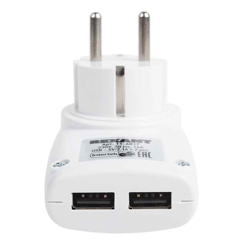 Адаптер питания 220В + 2 USB RX-17, код 11-6017, производитель REXANT