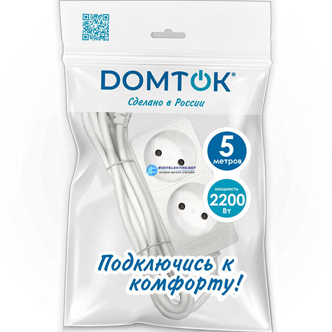 Удлинитель бытовой гнезда, ПВС без заземления, 5 метров, код 2347, производитель DOMTOK