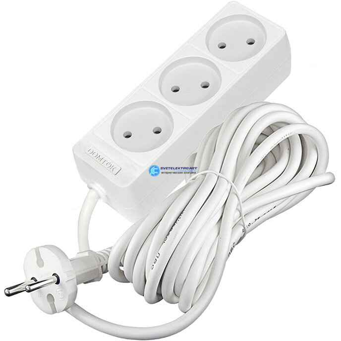 Удлинитель бытовой 3 гнезда, ПВС 2*0,75, 2,2кВт, без заземления 5м Лидер 2372 DOMTOK