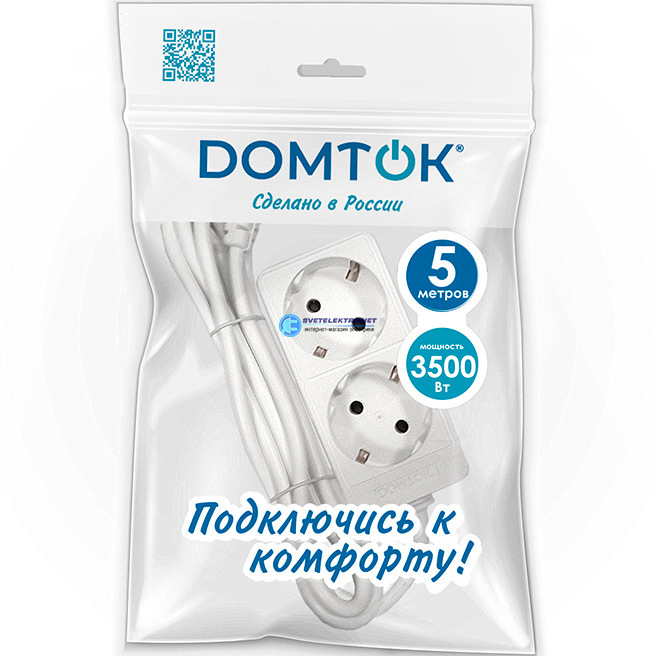 Удлинитель бытовой гнезда, ПВС 3*1, 3,5 кВт, с заземлением, 5 метров, код 2387, производитель DOMTOK