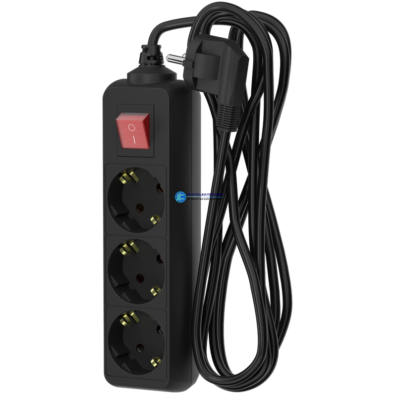 Удлинитель сетевой 16-53ЕS, 5м, 3 розетки, 16А, с выкл., с заземл., Черный, код 24756, производитель ФОТОН