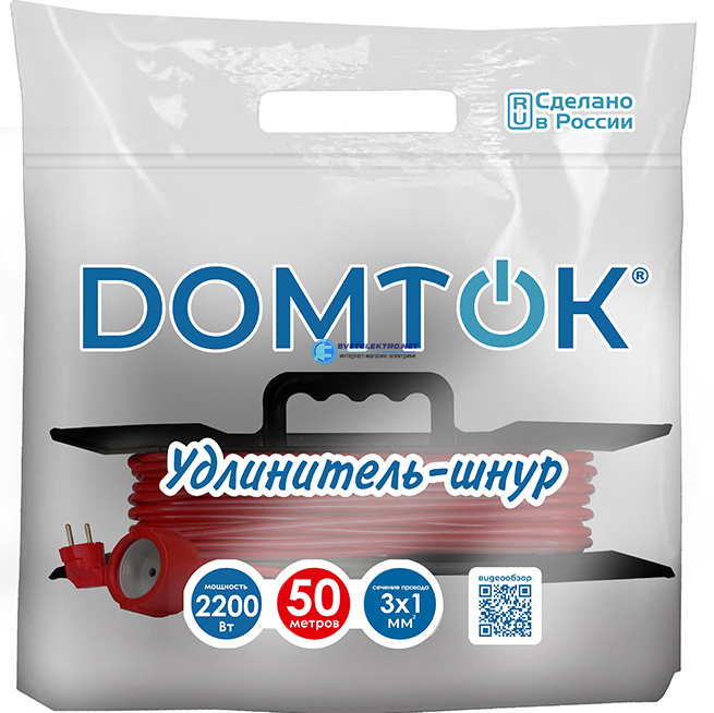 Удлинитель-шнур на рамке ПВС 3*1, 2,2кВт, с заземлением, 50 метров, код 2482, производитель DOMTOK