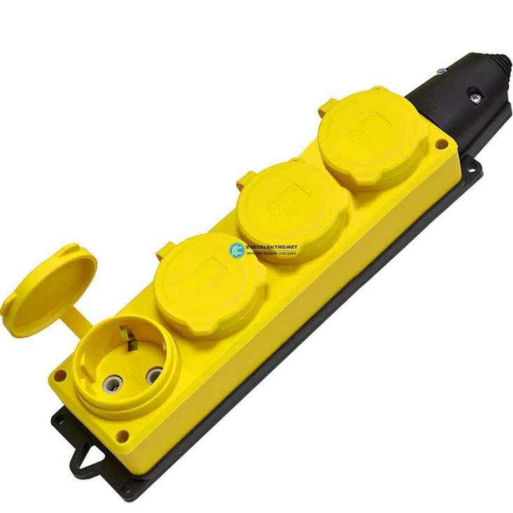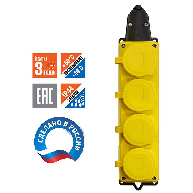 Колодка 4-х местная однофазная с заглушками КОМПАКТ каучук желтый, код 3084, производитель UNIVersal