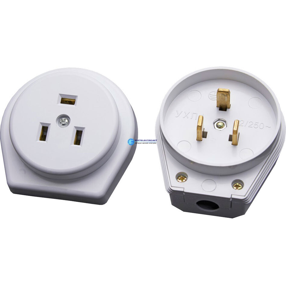 Вилка с розеткой для плит c/з, белый,, код 39016, производитель Stekker
