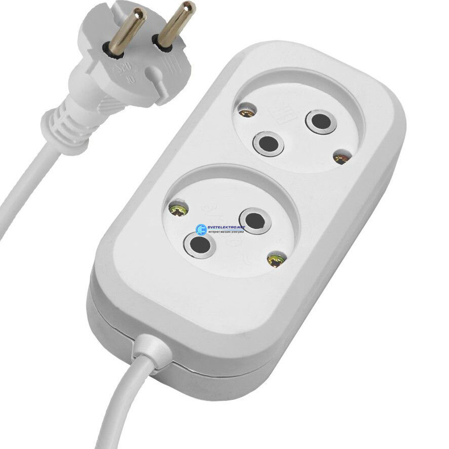 Удлинитель двухместный б/з 2x0,75, 3м, Home, белый,, код 39202, производитель Stekker