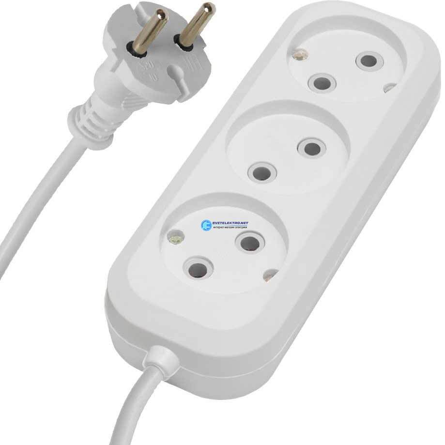 Удлинитель трехместный б/з 2x0,75, 2м, серия Home, белый,, код 39209, производитель Stekker