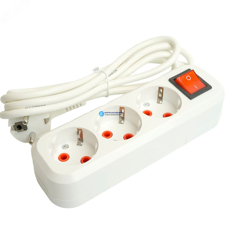 Удлинитель 3-местный с/з с выключ. 3x1мм2 3м 250В 16А серия Home HM07-31-03 белый HM07-31-03, код 49354, производитель Stekker