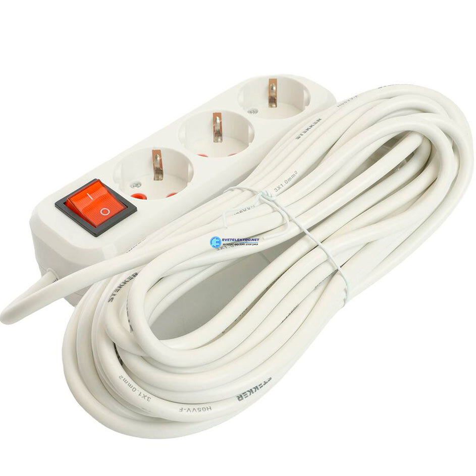 Удлинитель 3-местный с/з с выключ. 3x1мм2 7м 250В 16А серия Home HM07-31-07 белый HM07-31-07, код 49356, производитель Stekker