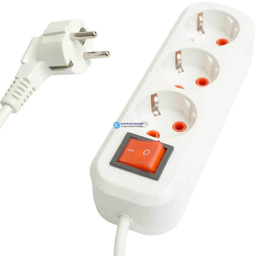 Удлинитель 3-местный с/з с выключ. 3x1мм2 10м 250В 16А серия Home HM07-31-10 белый HM07-31-10, код 49357, производитель Stekker