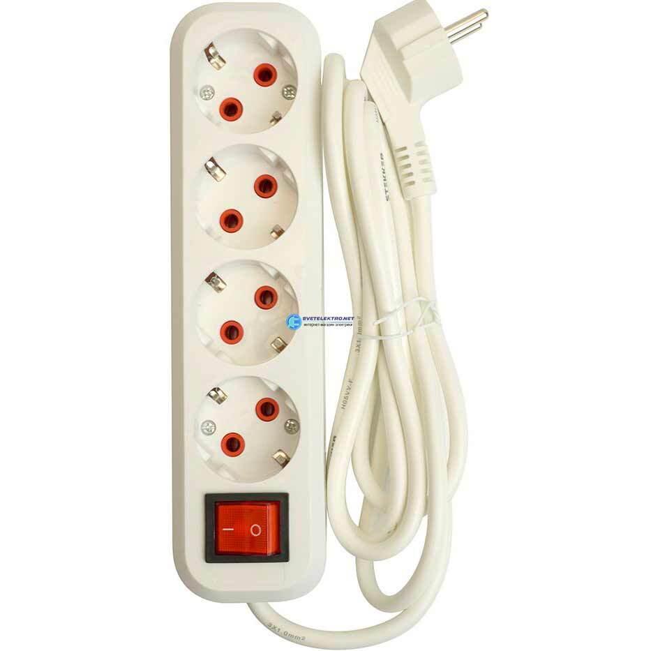 Удлинитель 4-местный с/з с выключ. 3x1мм2 7м 250В 16А серия Home белый HM07-41-07, код 49361, производитель Stekker