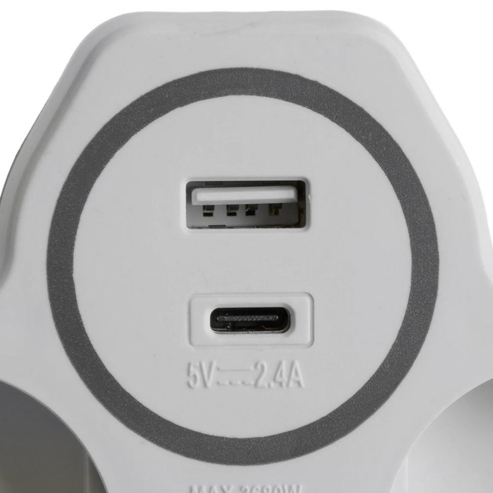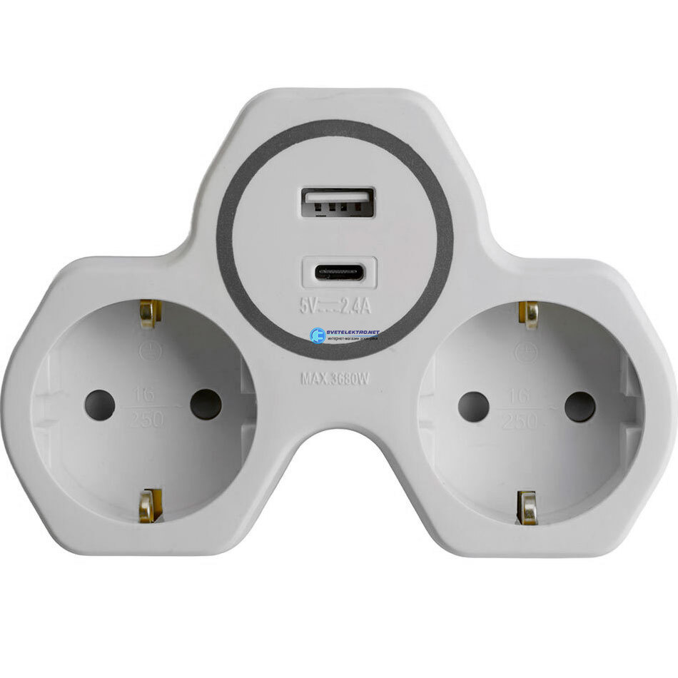 Разветвитель сетевой со шторками 2-местный (USB+Type C на 2.4А) с/з 250В 16A бел/сер ADP16-15-20 50071 Stekker