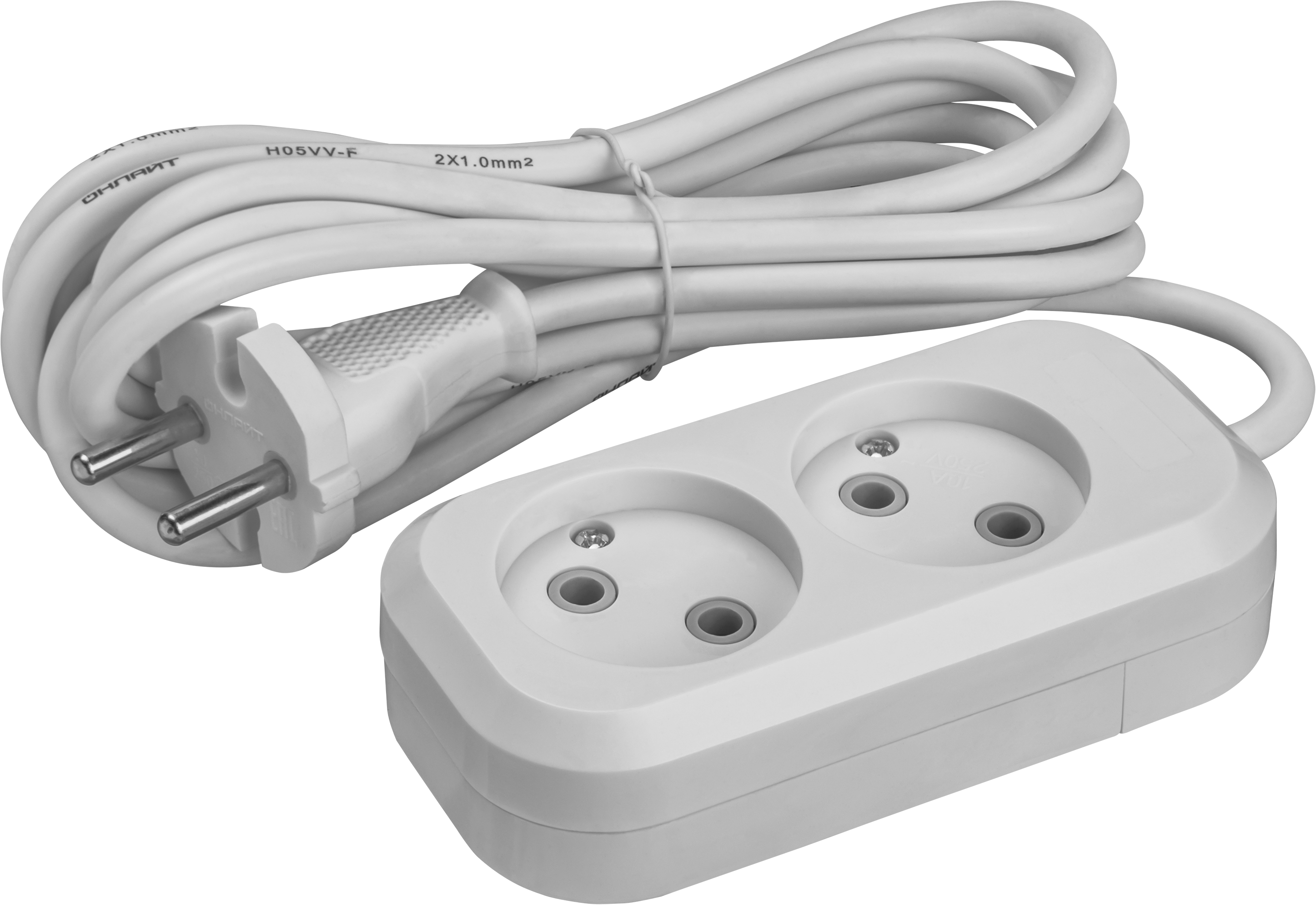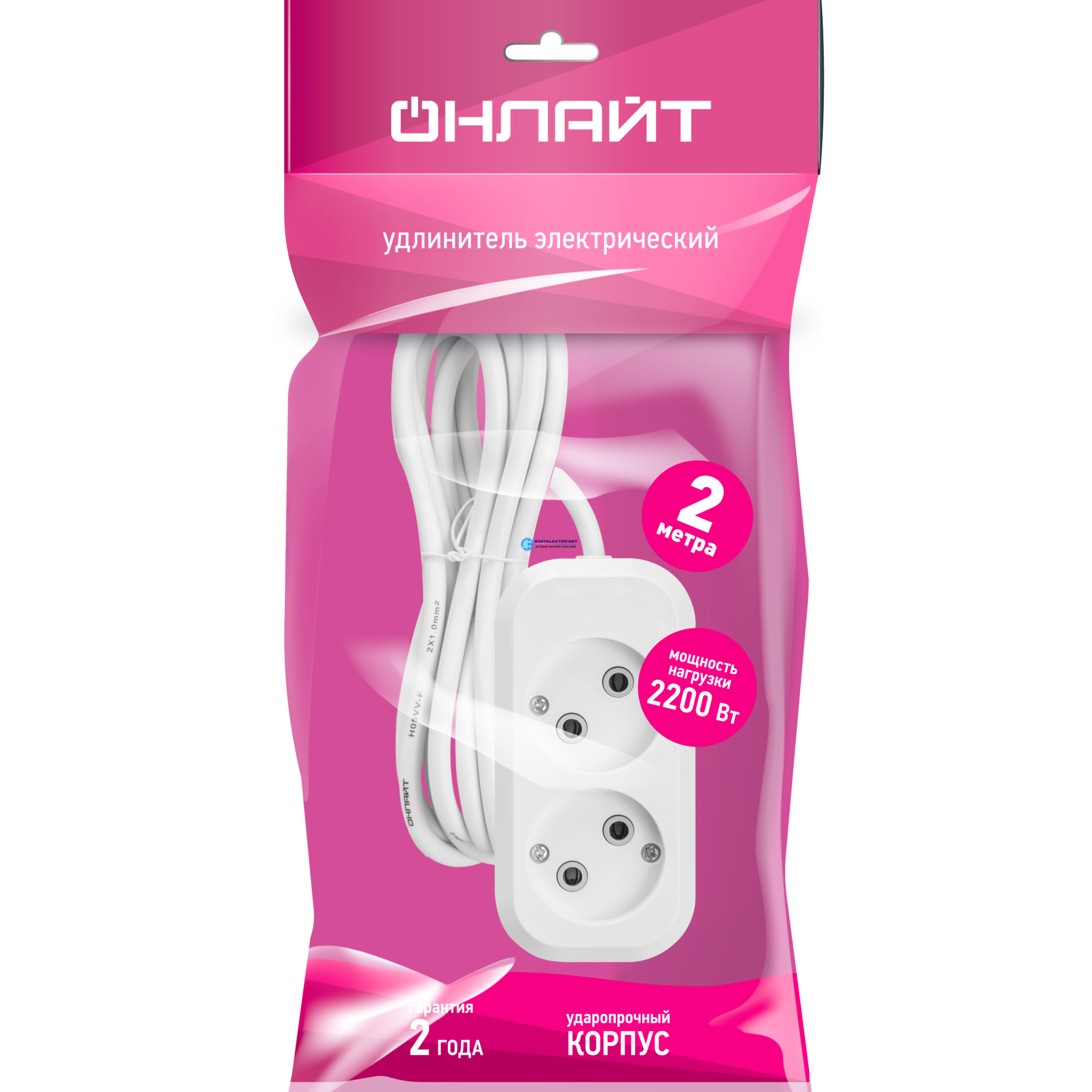 Удлинитель бытовой OPE-S-02-200-X-2x1 без заземления 2 розетки 2м ПВС 2х1 2200 Вт, код 90503, производитель ОНЛАЙТ
