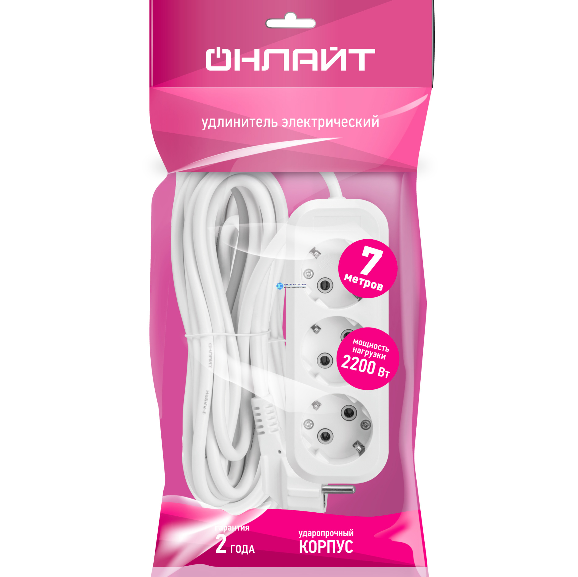 Удлинитель бытовой OPE-S-03-700-E-3x0.75 с заземлением 3 розетки 7м ПВС 3х0,75 2200Вт, код 90794, производитель ОНЛАЙТ