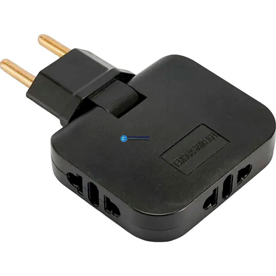 Разветвитель сетевой плоский поворотный 3-местный б/з, черный, код ADP10-23-22, производитель Stekker