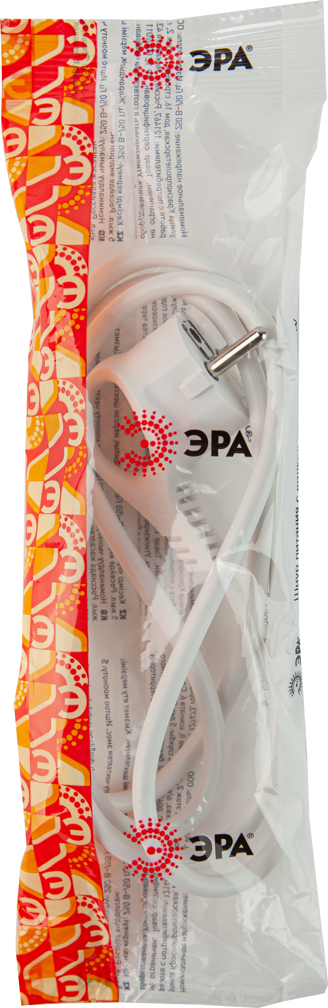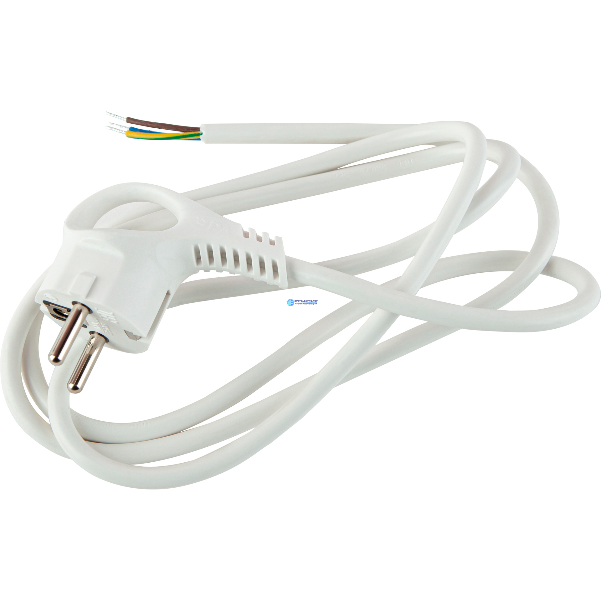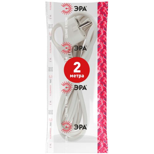 Шнур сетевой с вилкой U-3x1,5-2m-W с заземлением 2м ПВС 3x1,5мм2 белый, код Б0048706, производитель ЭРА