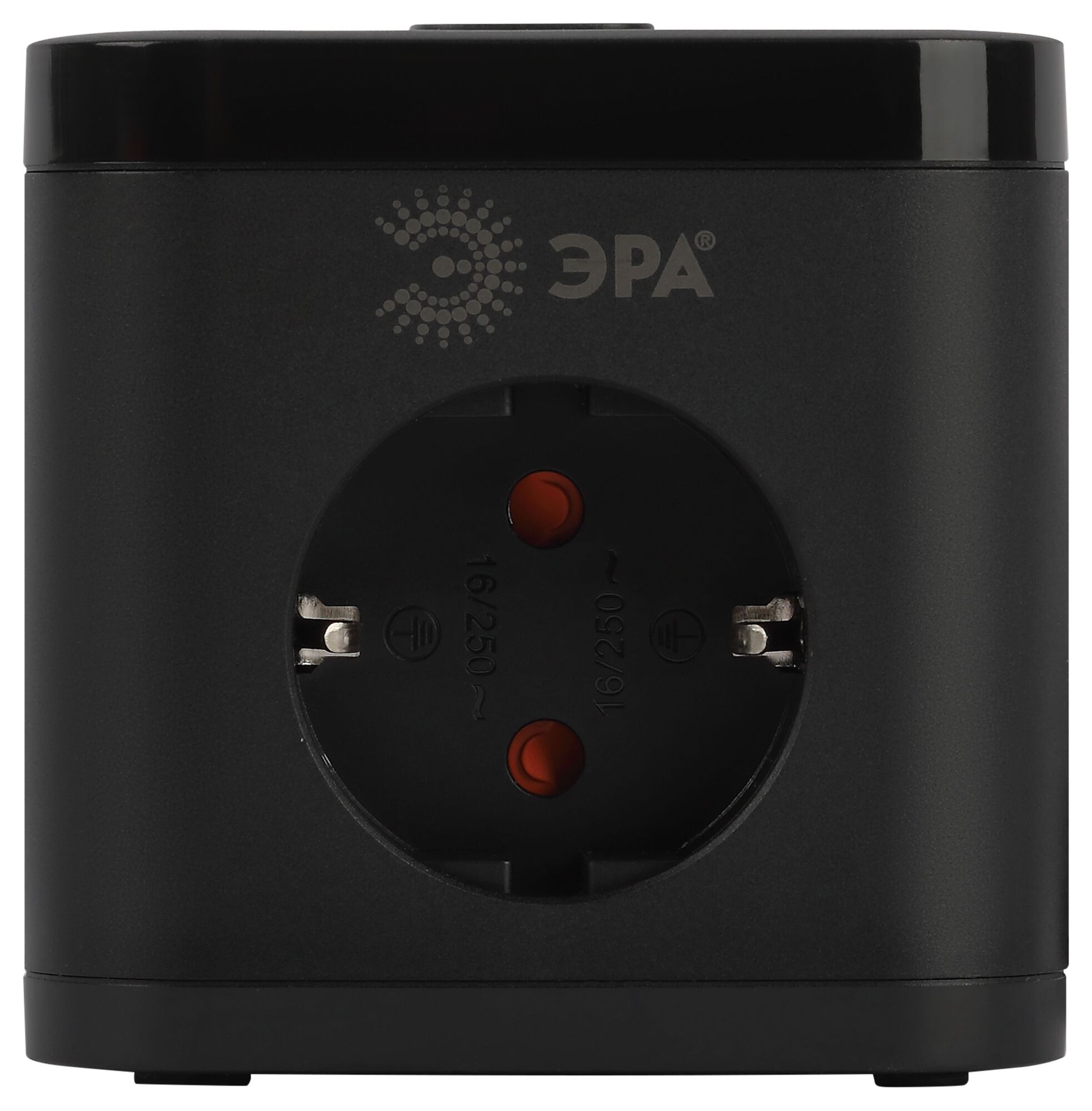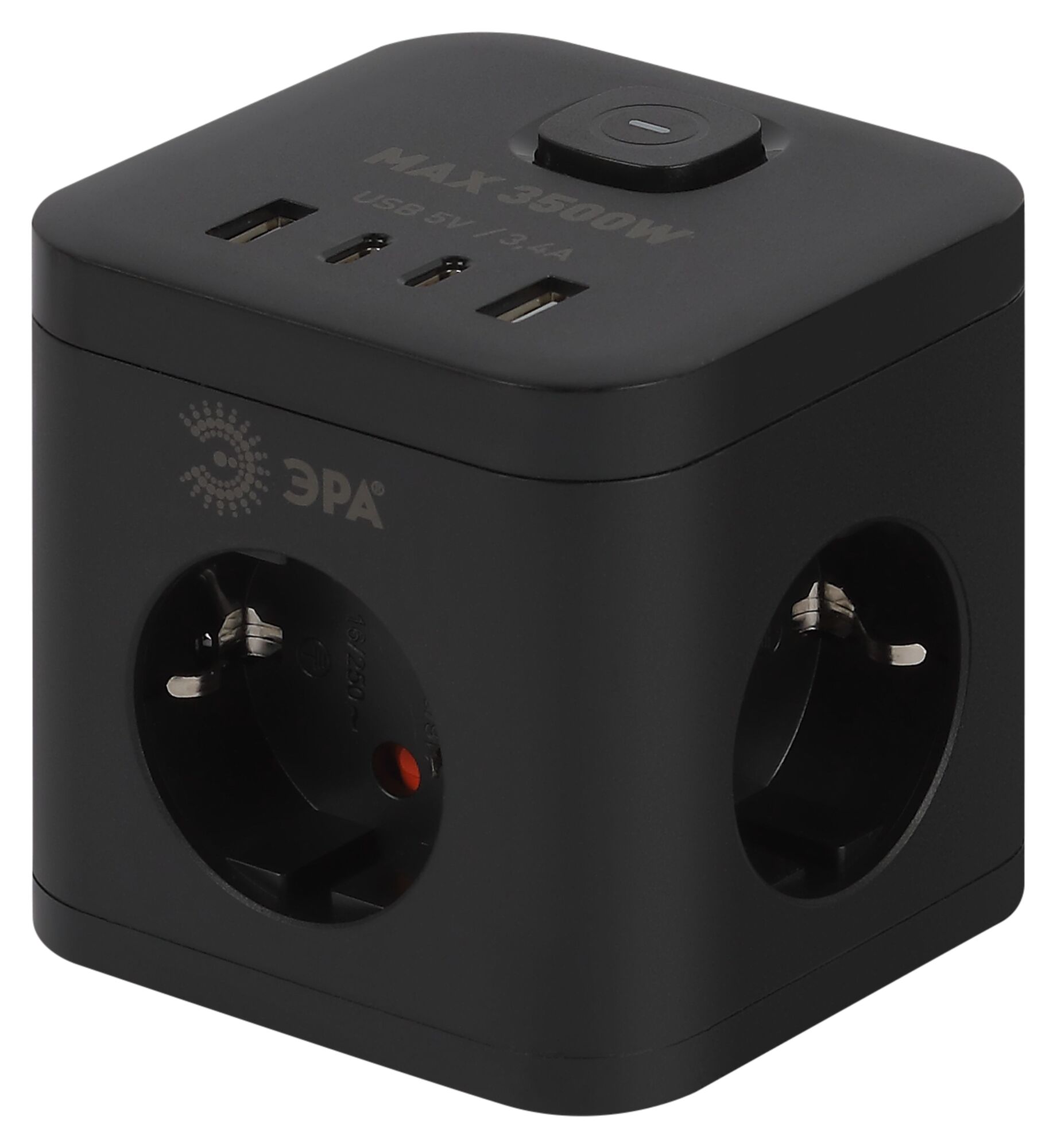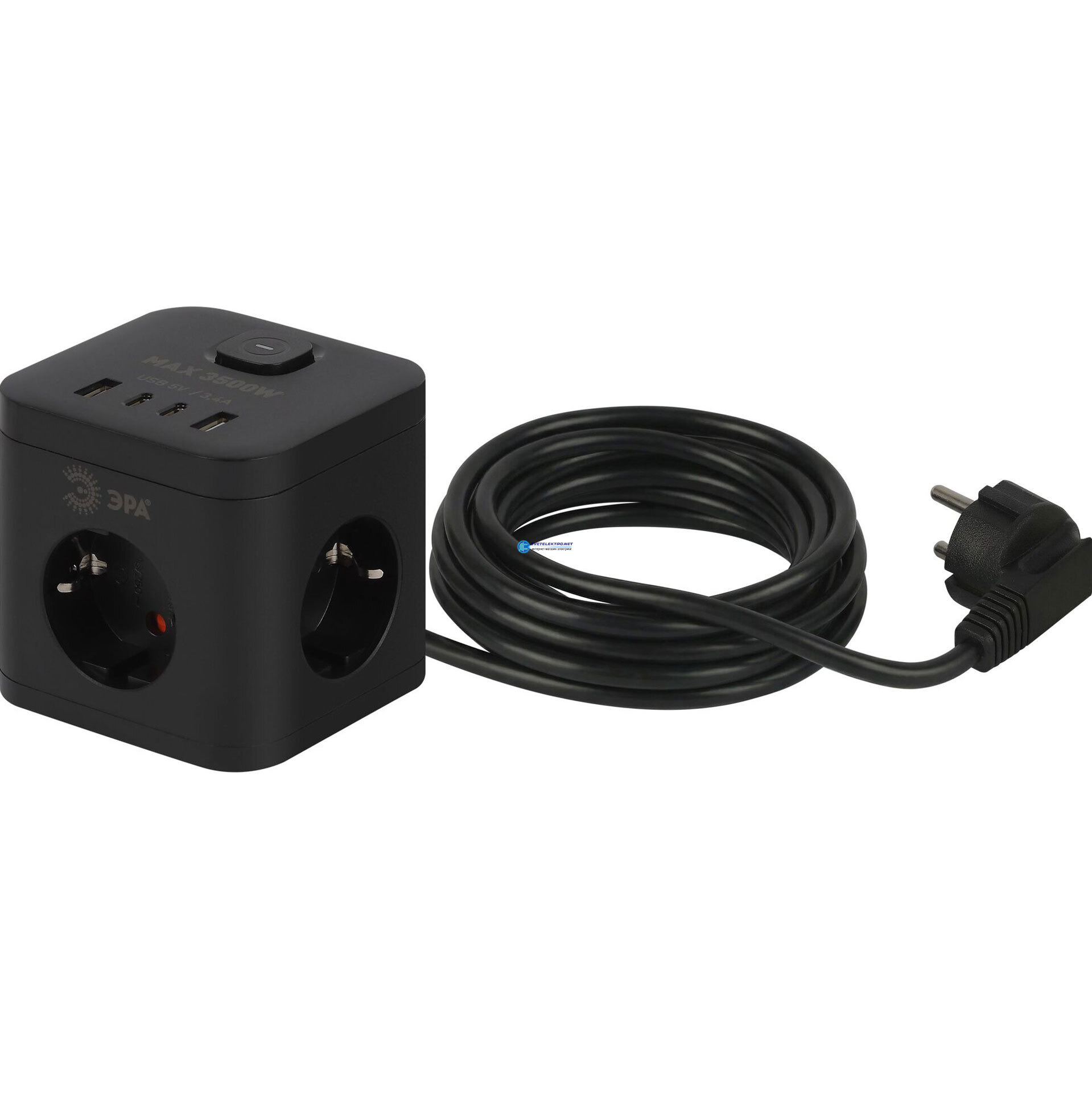 Удлинитель электрический 16А куб с заземлением с выключателем 3 розетки+4xUSBA+C 1,5м черный CUBE-3es-1,5m-4USB-B, код Б0069074, производитель ЭРА