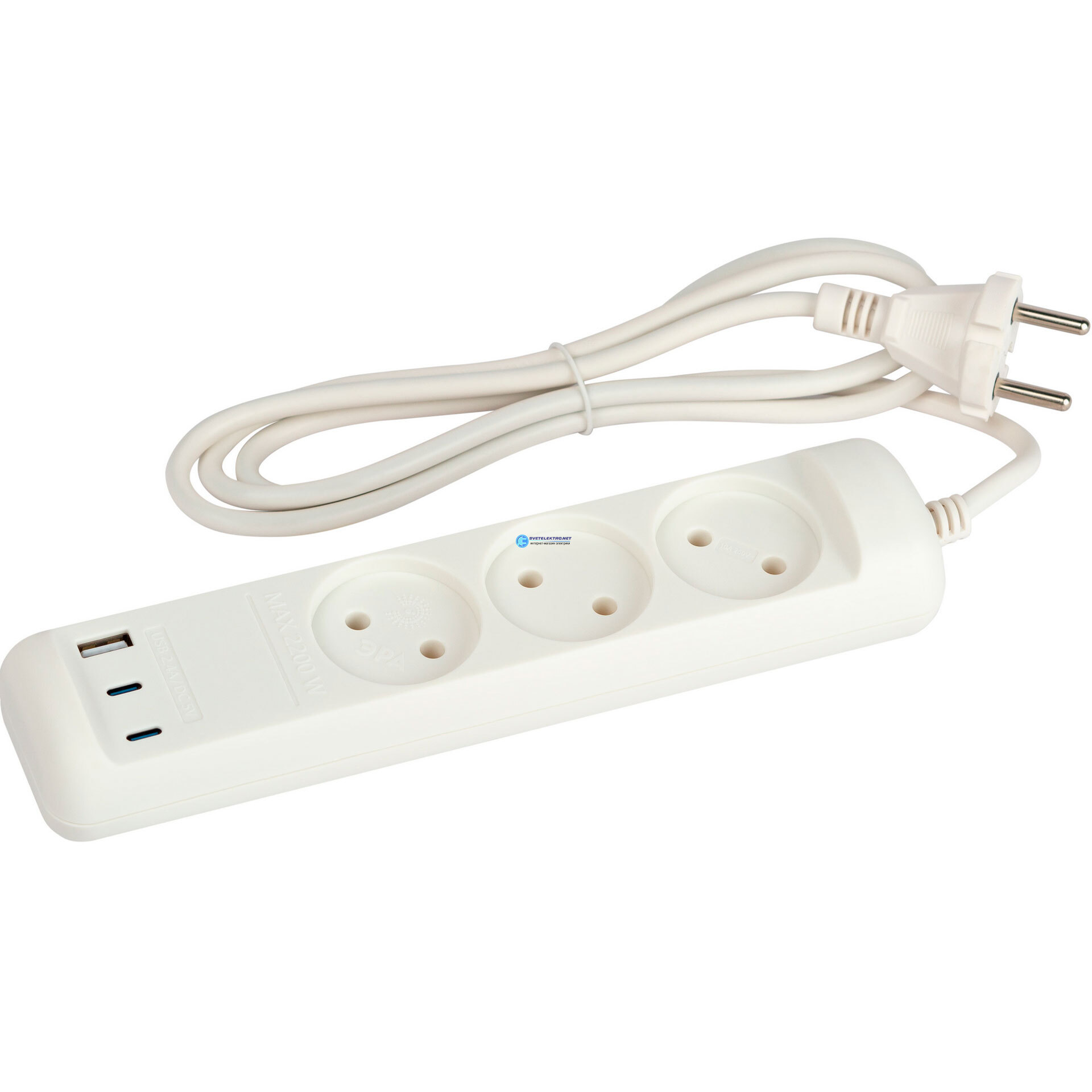 Удлинитель электрический U-3-1,5m-USB-W 3 розетки + 3xUSB A+C 1,5м 10А белый, код Б0069075, производитель ЭРА