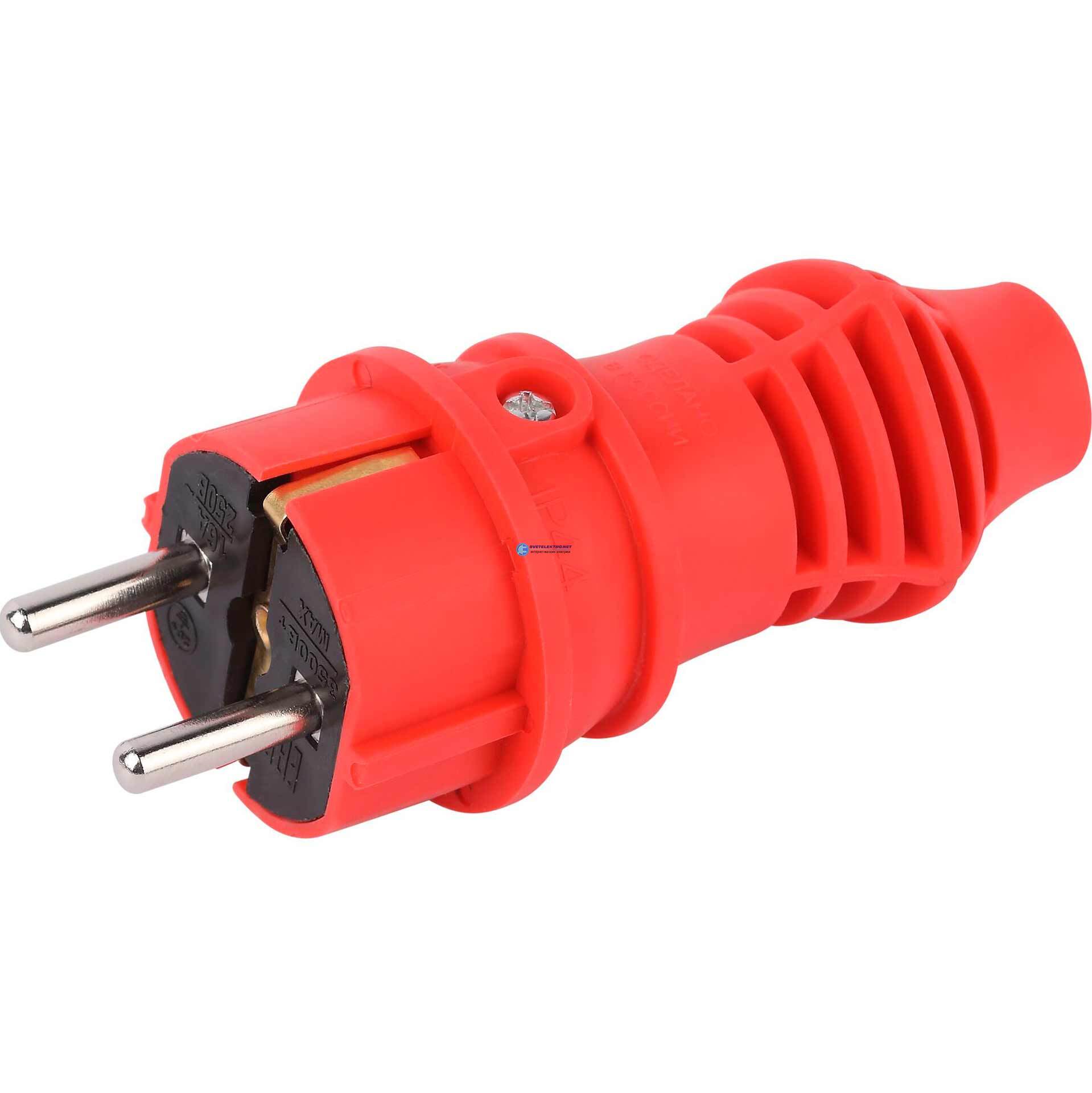 Вилка каучуковая прямая c заземлением 16А IP44 красная VX13-R-IP44, код Б0069322, производитель ЭРА