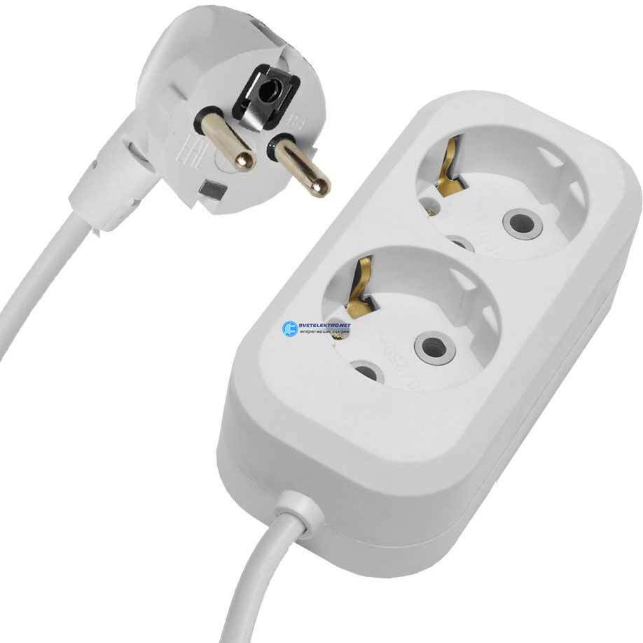 Удлинитель двухместный с/з 3x0,75, 5м, Home, белый,, код 39207, производитель Stekker