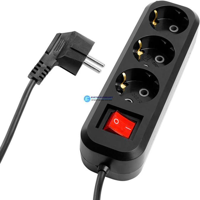 Удлинитель трехместный с/з с выключателем 3x0,75 3м Home HM03-31-03 У10А-002 черный HM03-31-03 50422 Stekker