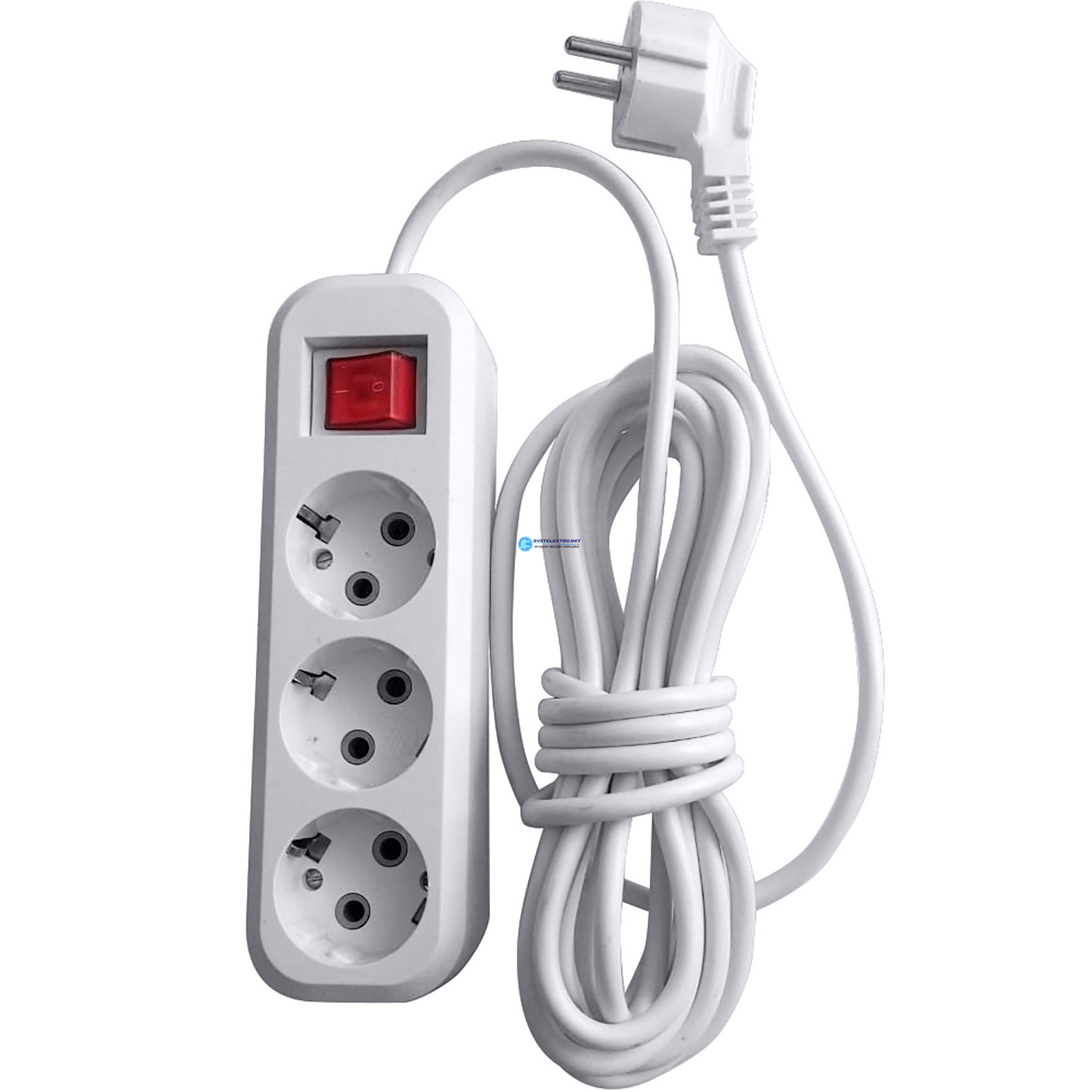 Удлинитель 3-местный с/з с выключателем 3x0.75 5м 250В 10А Home У10А-002 белый, код HM03-31-05 39199, производитель Stekker