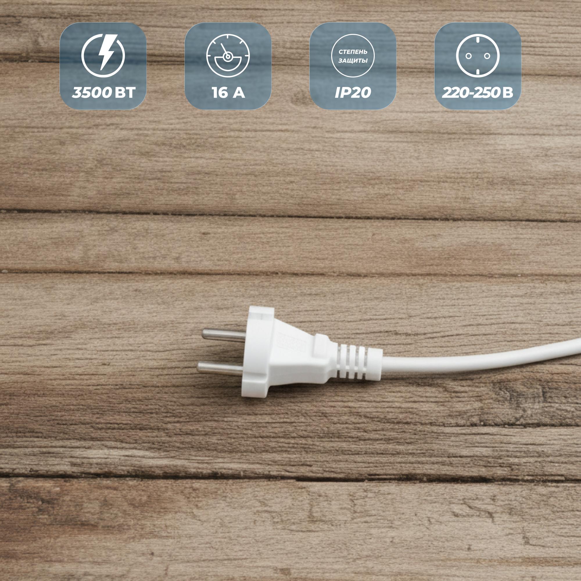 | Дополнительная информация: | номинальное напряжение – 220-250 В|максимальный ток нагрузки – 16 А|степень защиты – IP20|максимальная суммарная мощность нагрузки – 3500 Вт|сечение провода – ПВС 3 х 1.5|страна-производитель – Россия: |