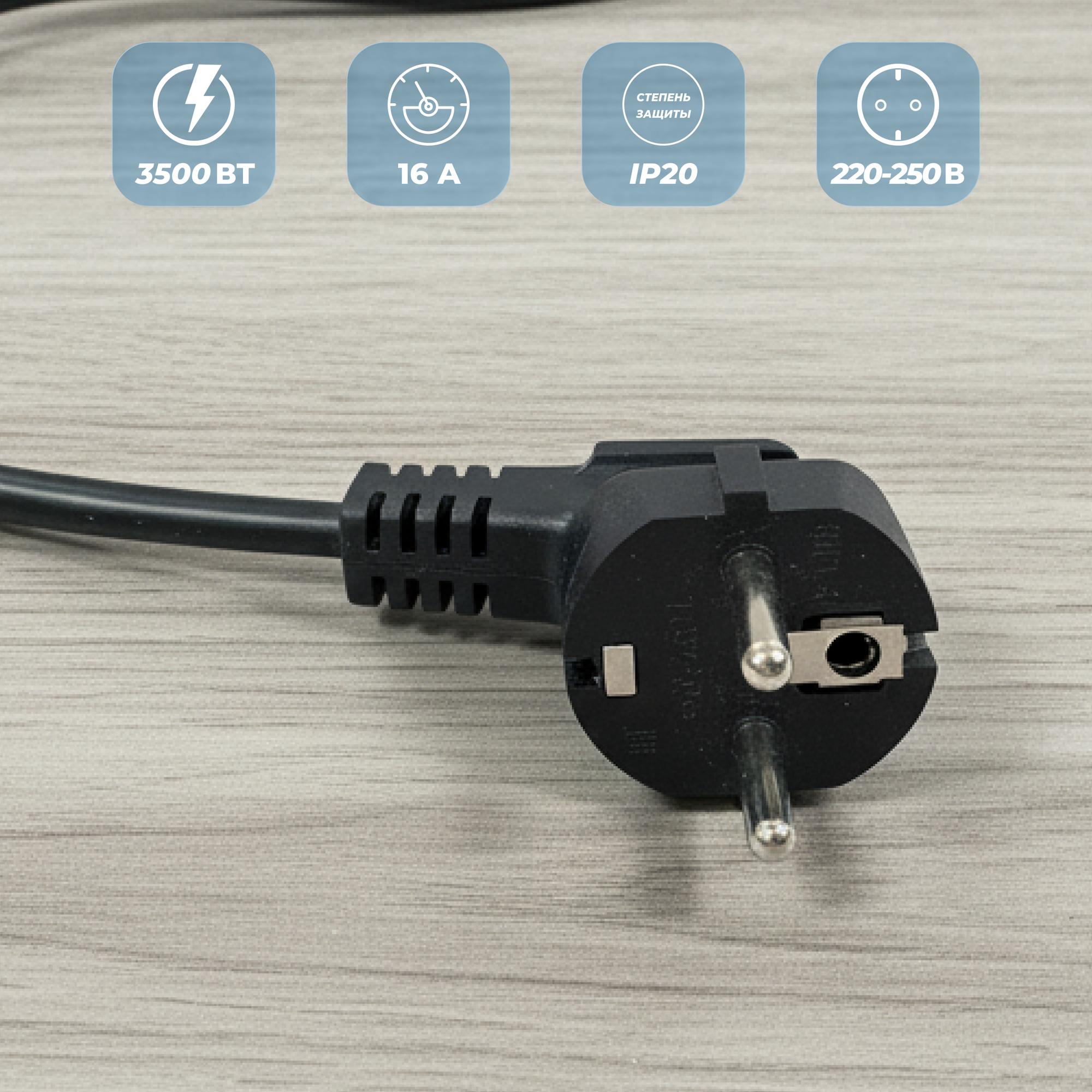 | Дополнительная информация: | номинальное напряжение – 220-250 В|максимальный ток нагрузки – 16 А|степень защиты – IP20|максимальная суммарная мощность нагрузки – 3500 Вт|сечение провода – КГ-ХЛ 3 х 1.5|страна-производитель – Россия: |