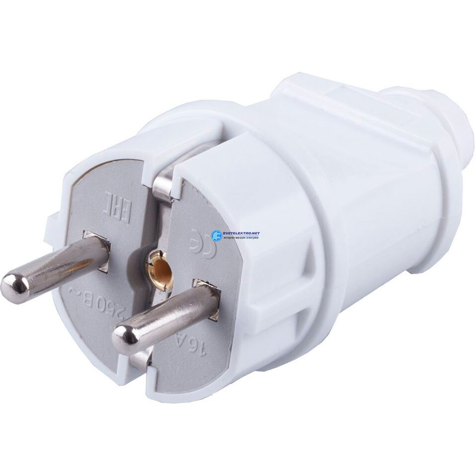 Вилка прямая с/з, пластик 250В, 16A, IP20, белая,, код 32851, производитель Stekker